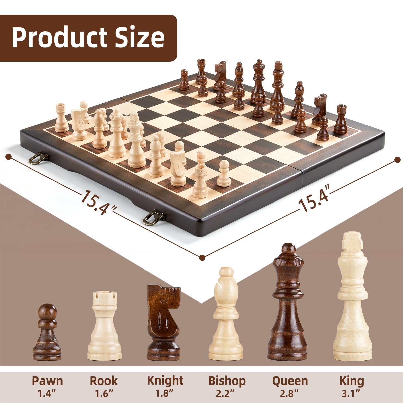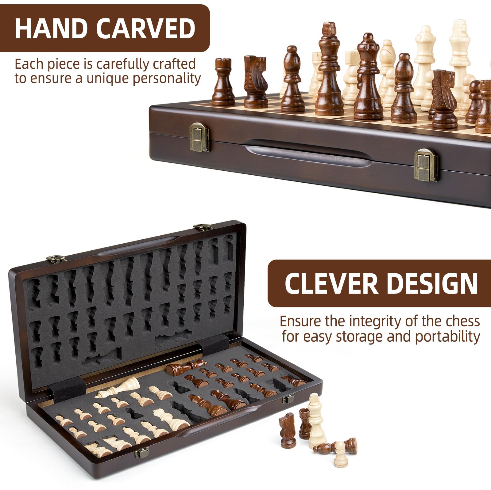 Magnetic Chess Game: The hand-carved chess pieces are magnetically attached to the chess board to ensure the stability of the chess pieces when playing chess, and the felt on the bottom can avoid scratching the board. Whether you're traveling by road, car, or plane, you can keep the game running smoothly and have uninterrupted fun!