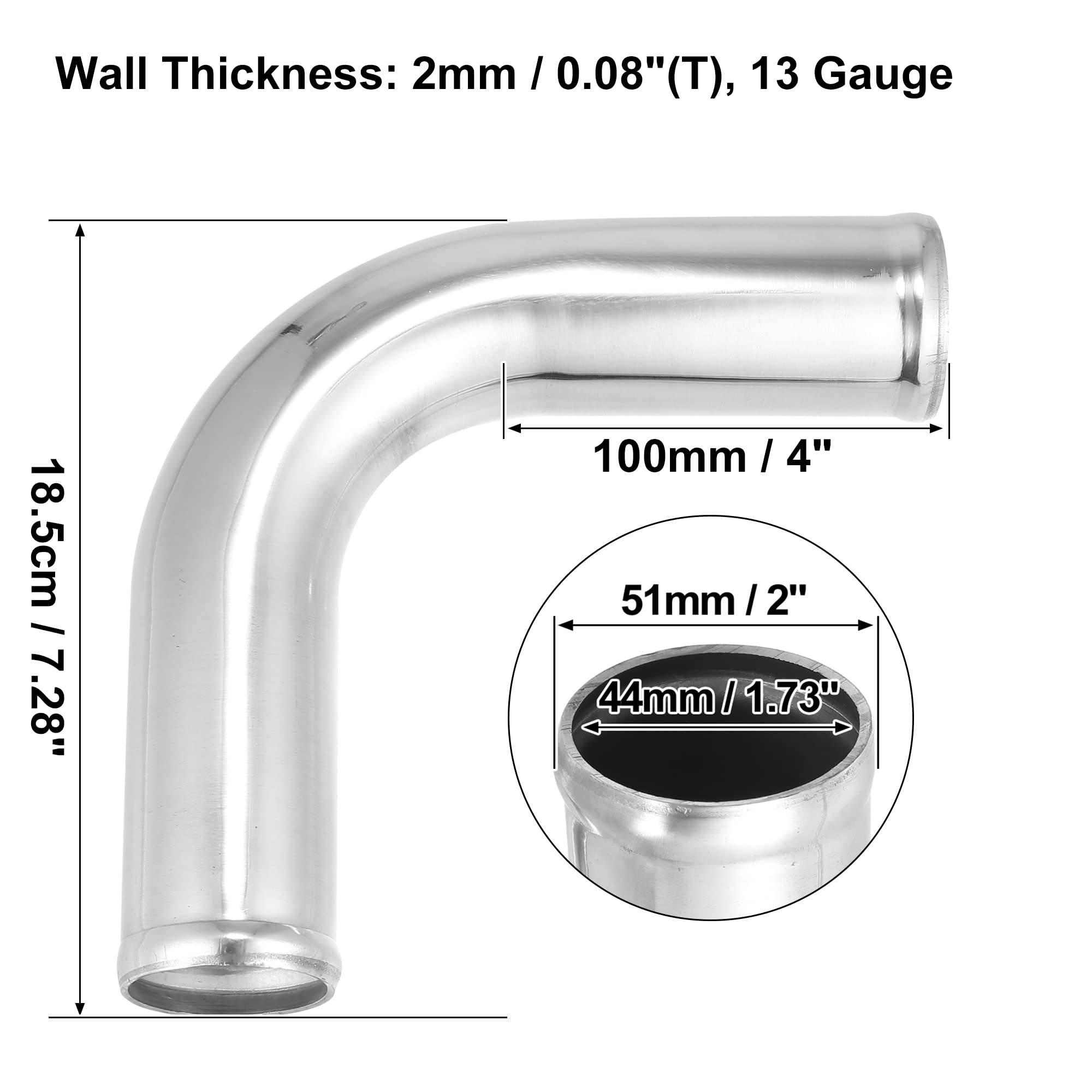 Specification: Pipe Type: 90 Degree Bend Elbow, Wall Thickness: 2mm / 0.08"(T), 13 Gauge, Inner Diameter: 45mm / 1.77", Outer Diameter: 51mm / 2", Leg Length: 100mm / 4", Size: 20x18.5cm / 7.87"x7.28"(L*W)