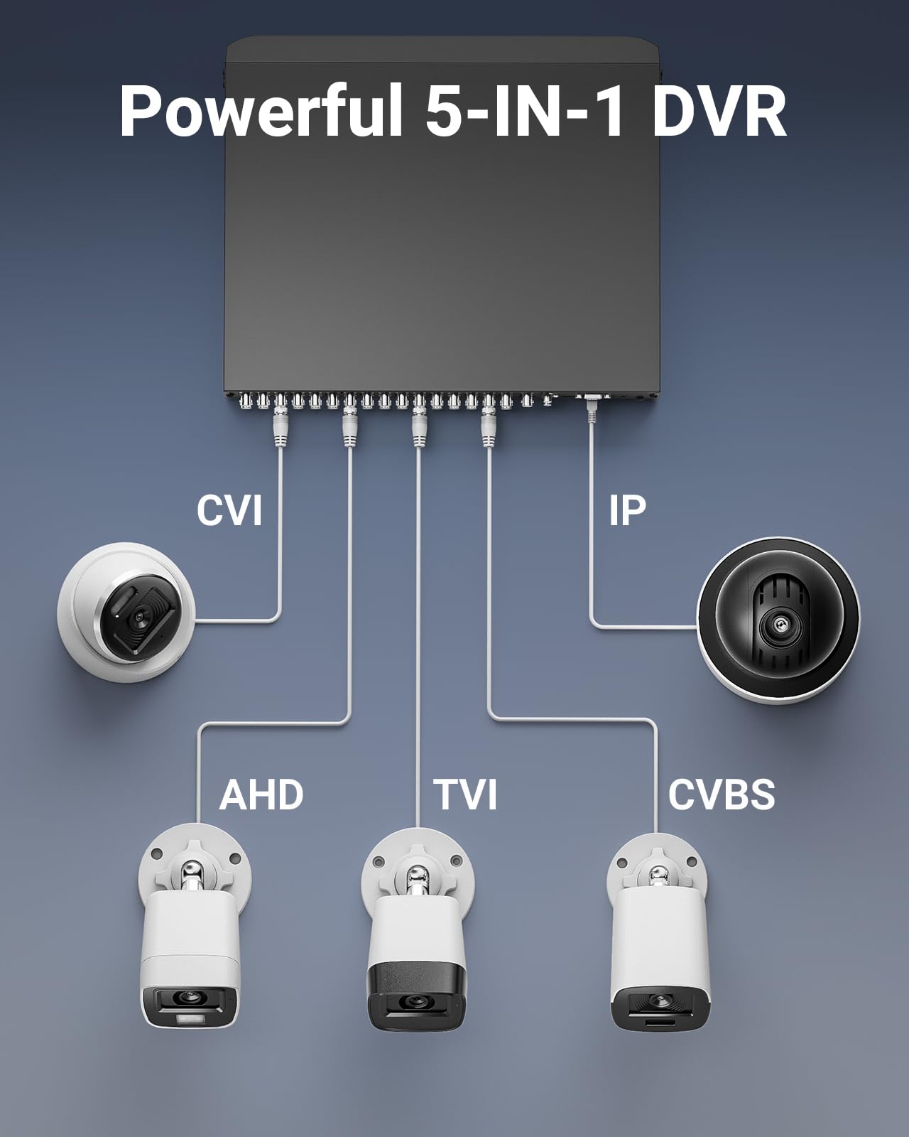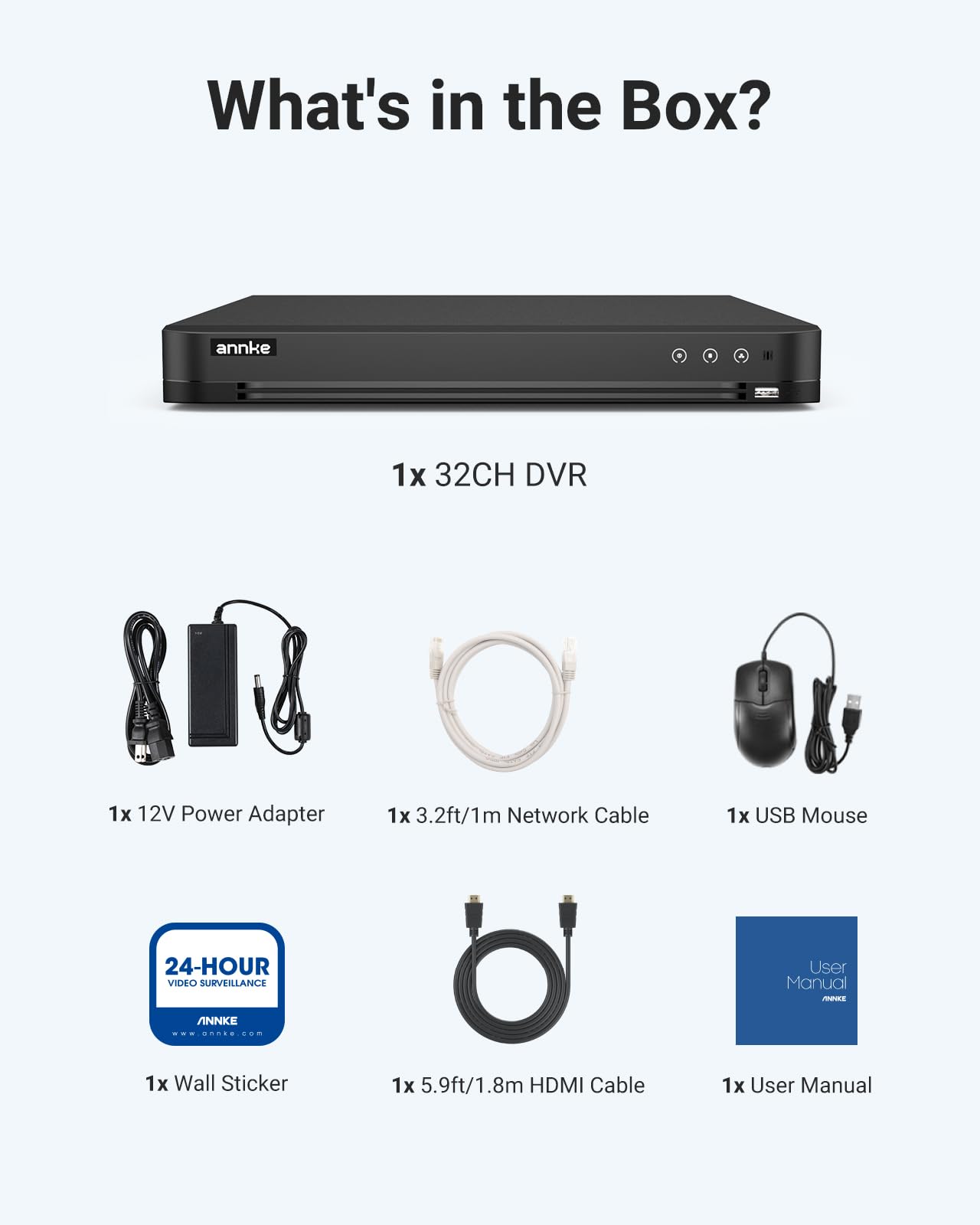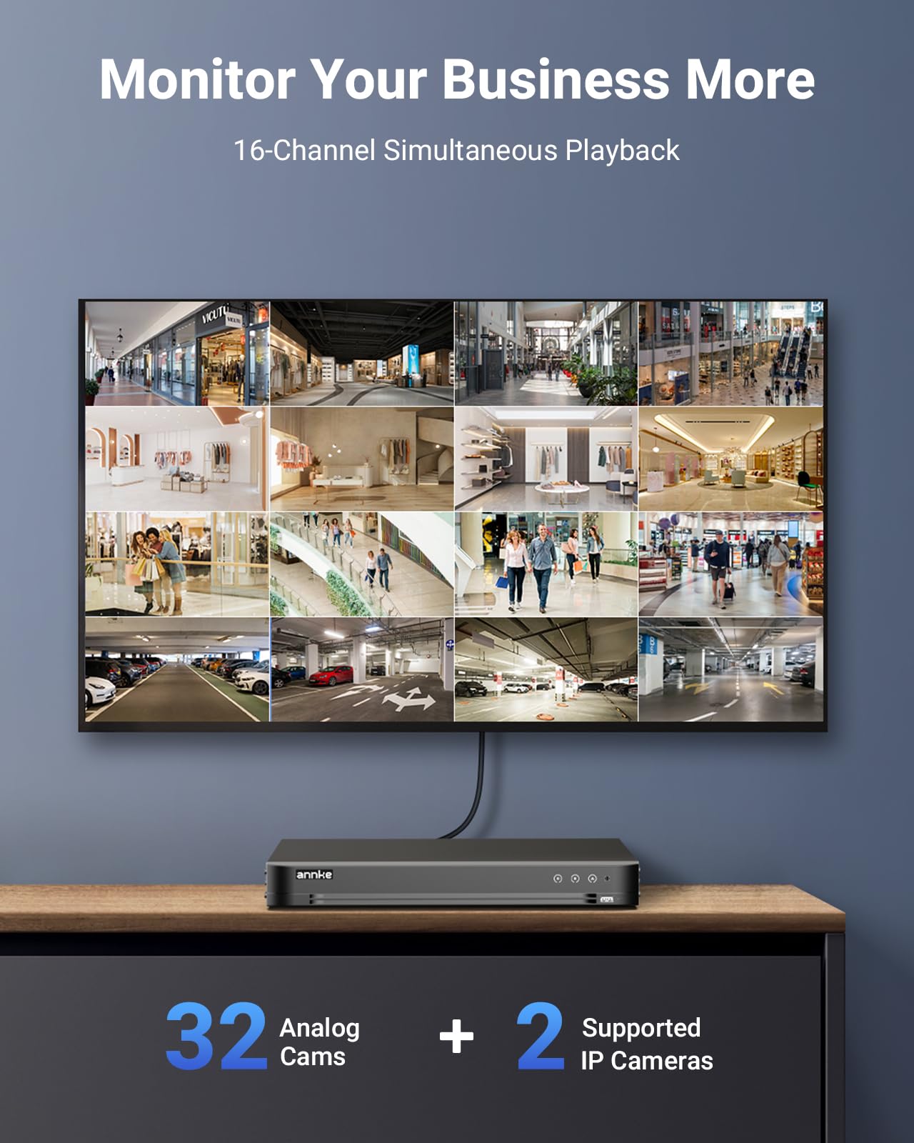 【Ideal 5-in-1 Hybrid 3K Lite DVR for Full-Range Protection】 Up to 34CH, including 32pcs 3K analogs + 2pcs IP cameras, ANNKE DVR accesses the DVR/NVR/HVR tech seamlessly to record videos from 3K TVI & CVI/AHD/CVBS with a 4MP resolution & IP cameras at a clarity of 6MP.