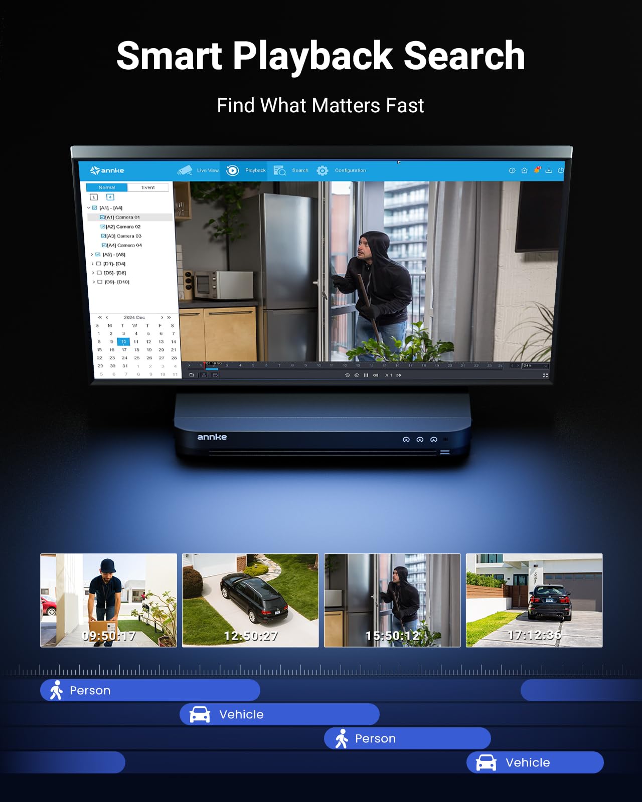 【Smarter Person/Vehicle Detections Staying in the Know】 Having optimized the AI person/vehicle detection, ANNKE DVR sends you the intruding alerts by app pushes & emails more instantly & precisely. Always get to know a real threat at time yet free from unnecessary alarms.