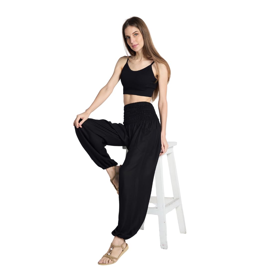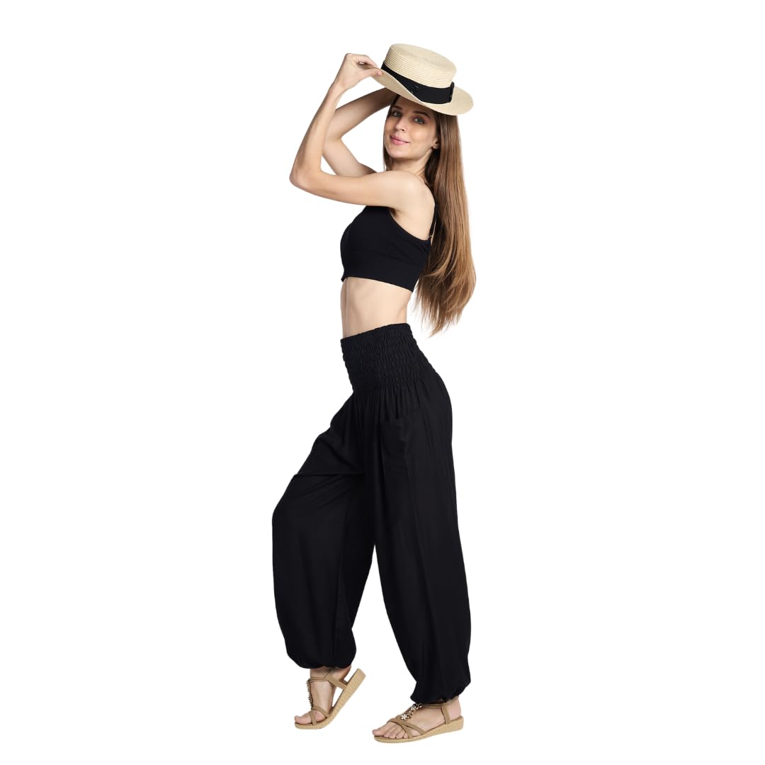 COMFORTABLE: Baggy fitting & flattering in all the right places, our high rise harem pants for women have a slimming smocked waist & stretchy elastic at the ankles. Wear the them as tummy control yoga bottoms, pajama, dance pants & much more