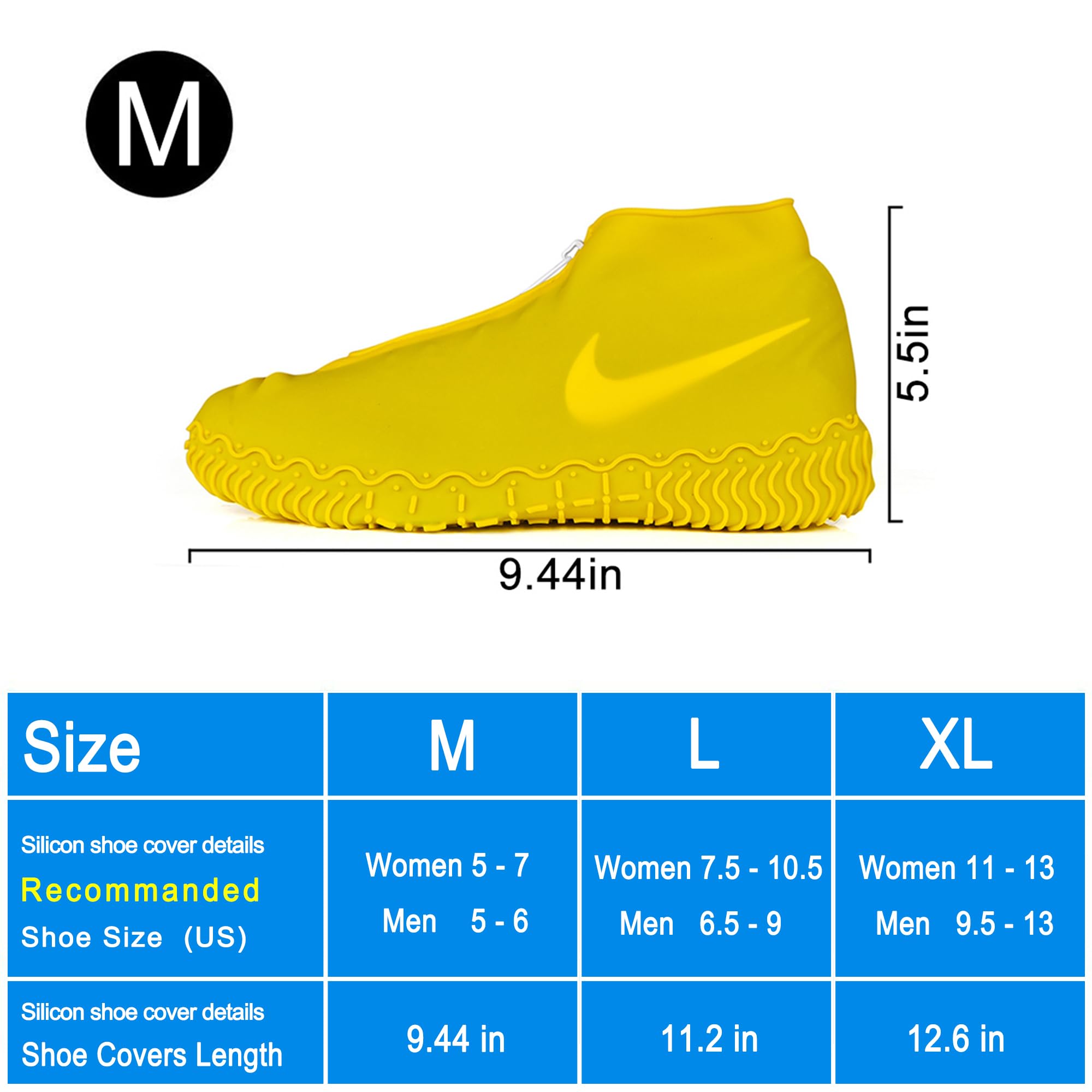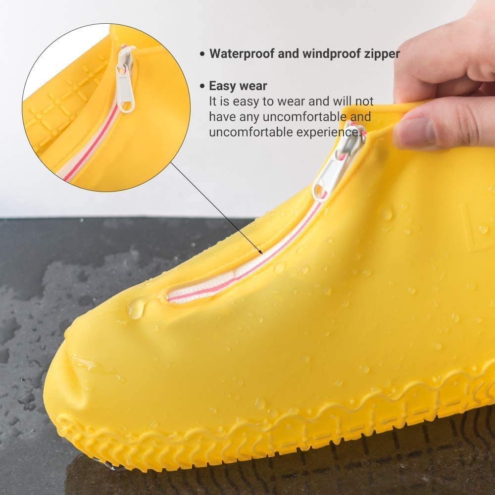 ALL-ROUND WATERPROOF, REUSABLE : Stretchable silicone And very resistant to tearing, Waterproof zipper strip design helps you to put them on and off easily,it can avoid rain or water into the shoe cover from zipper,extending the lifetime of your footwear. Waterproof shoe cover no need to take hundreds of shoe & boot covers, simple to wear silicone waterproof cover just spend one minute.