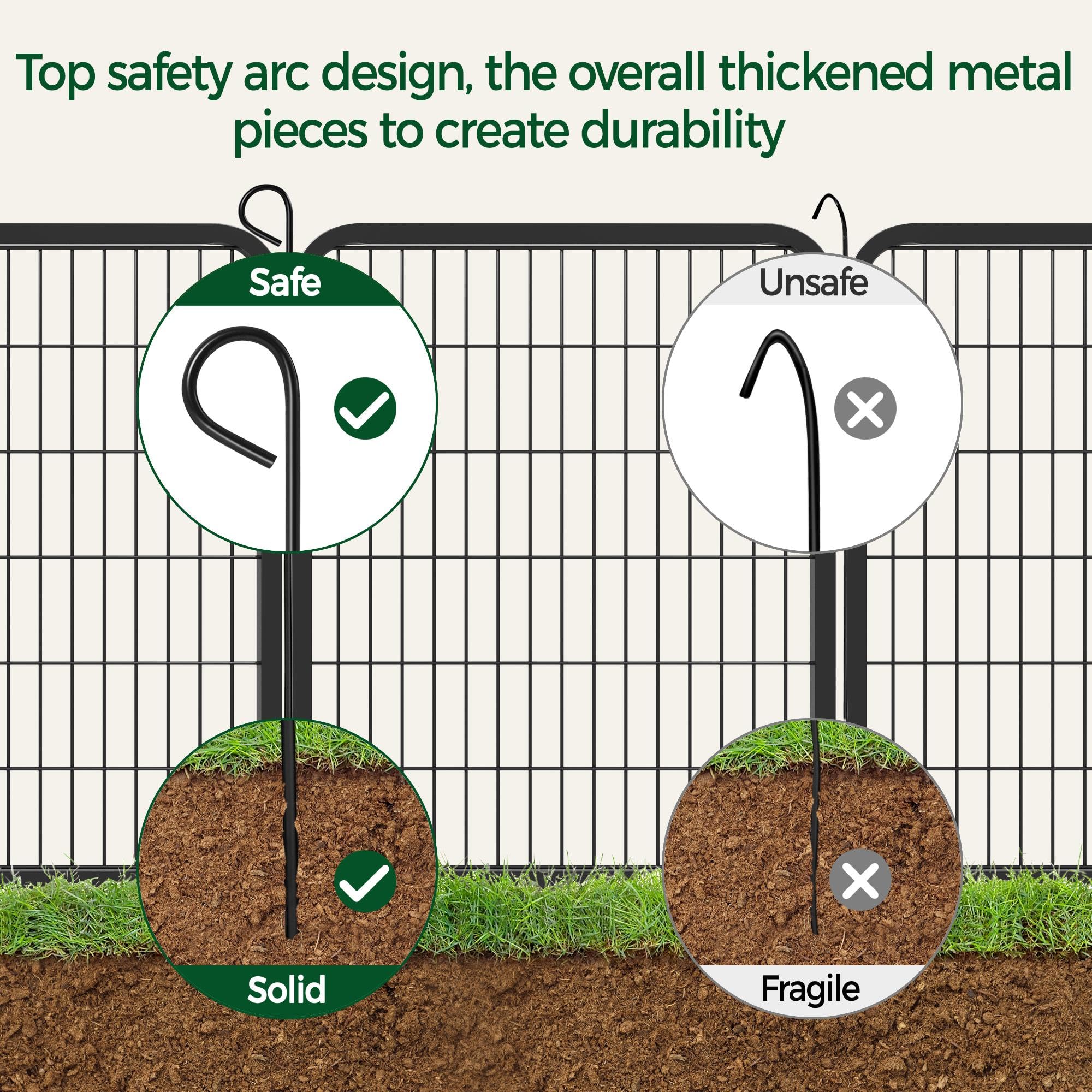 Safety & Security: Ensuring the safety of your pets is of utmost importance to us. Our exercise pen is crafted with appropriate bar spacing and a latch that locks automatically as you close the door. Rounded edges also protect animals from injuries while preventing damage to wood or PVC floors. Additionally, stakes anchor the panels firmly to the grass or soft ground