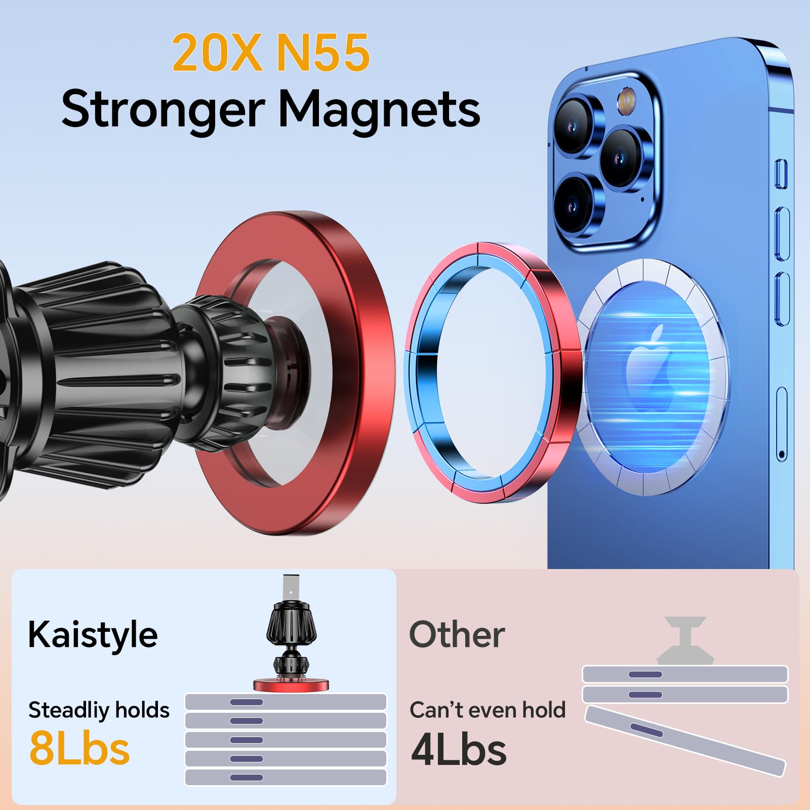 ✅【STRONG MAGNETIC MagSafe Car Mount】 - This powerful magnetic phone holder can create a powerful attraction that firmly supports your device while allowing you to drive without distraction. it easily and securely holds your phone through bumps, sharp turns or even sudden stops, no worrying of dropping your phone.