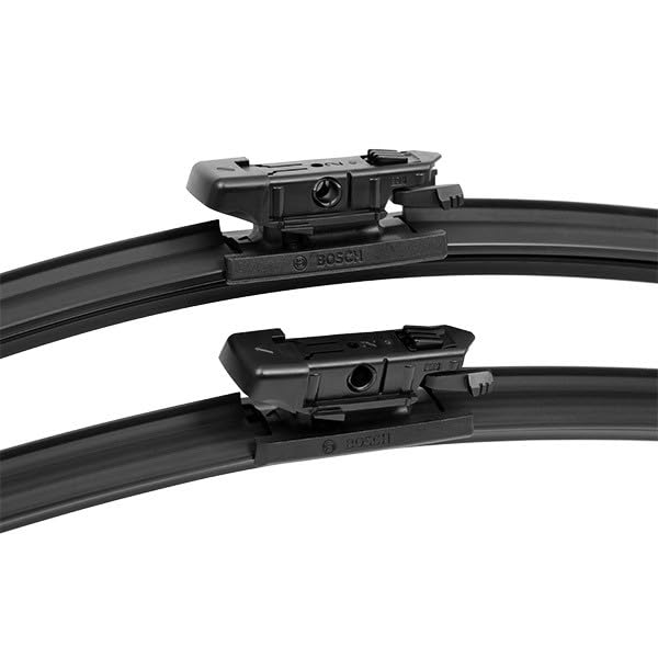 Bosch AeroTwin's patented beam design contains no metal or plastic brackets, joints or hinges, offering an ideal technology upgrade for vehicles originally fitted with conventional wiper blades. The specially blended dual rubber compound with graphite coating removes even the smallest traces of water for exceptional all-weather visibility and smooth, quiet operation. Specific beam curvature for OE specialty wiper arm types, coupled with dual precision-tensioned steel springs, ensures uniform pressure along the entire blade length for crystal clear visibility. Built-in asymmetrical wind spoiler uses air flow to increase blade-to-windshield contact - for consistent performance at highway speeds. Wind spoiler also serves to protect the tension springs from damage by severe weather elements for increased durability and long life. Pre-assembled OE style adapter provides OE fit and function for simple, easy installation on specific vehicles. Set of 2. Note: AeroTwin wiper blades are designed to fit vehicles with specific wiper arm connnection types - they are not universal fit wiper blades. Please verify specific vehicle fitment details with fit checker above.