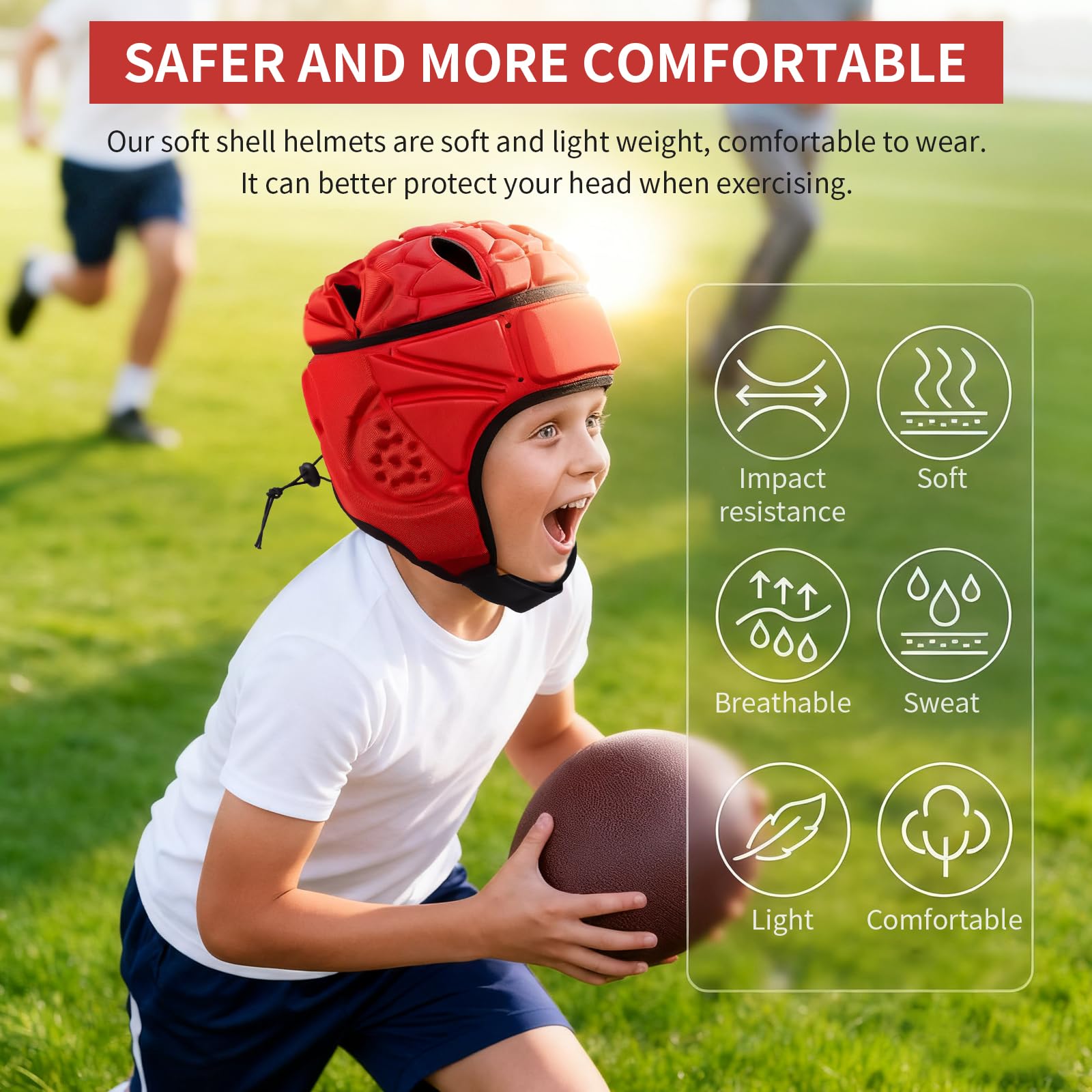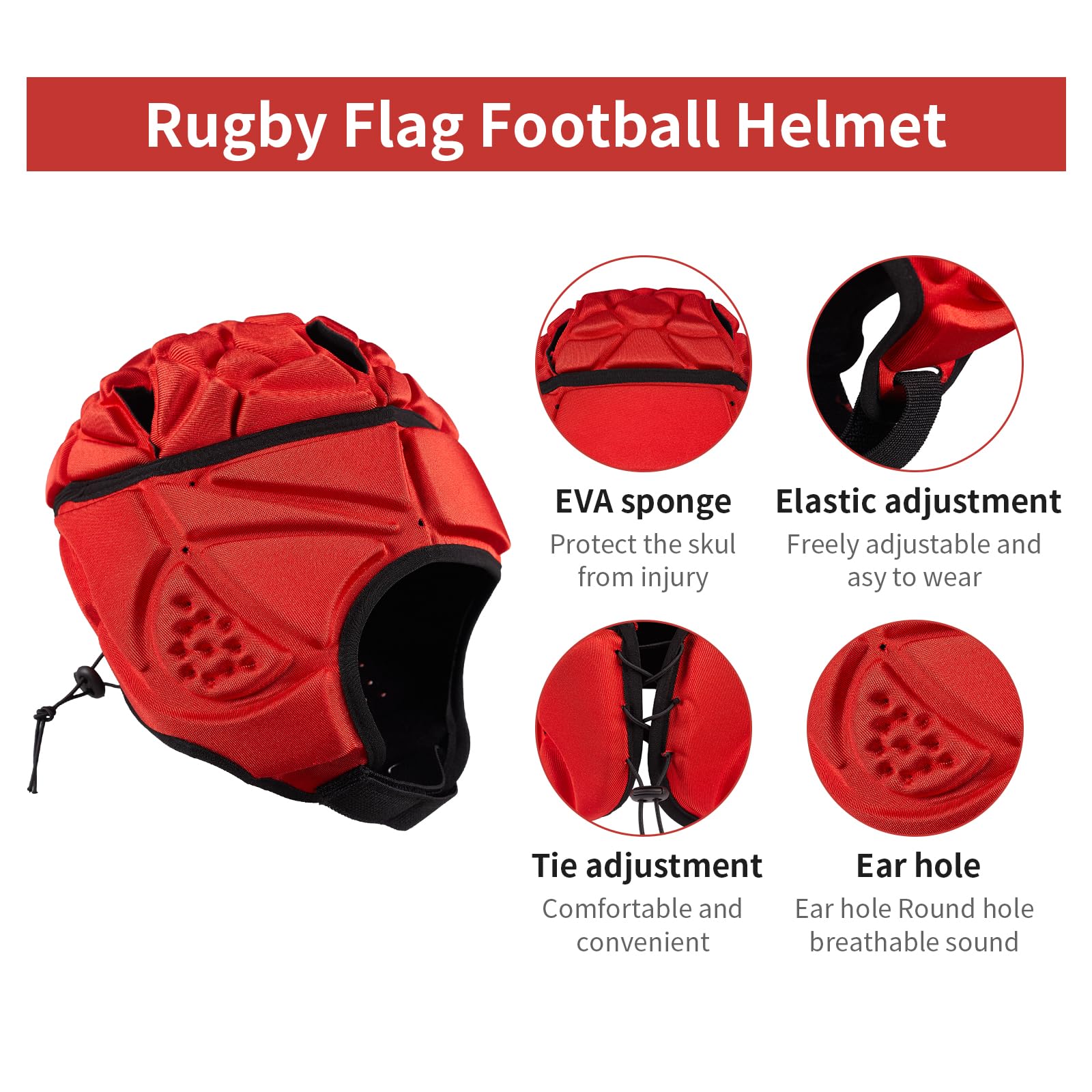Comfortable and breathable, this foam padded rugby helmet is designed with multiple ventilation holes, which can allow you to discharge heat during exercise, which is beneficial to keep your head dry and not stuffy; the improved 3D ear design will not hinder your communication with your companions .