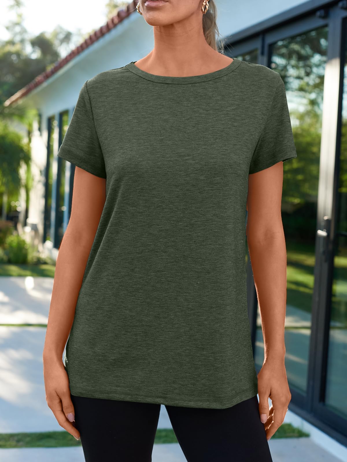 Refined Everyday Look: Featuring a timeless crewneck and clean, minimalist lines, this solid-color top offers a structured yet soft feel. It's a modern classic that instantly elevates your simplest outfits with a polished, put-together aesthetic—a dood choice for teachers and professionals seeking effortless style