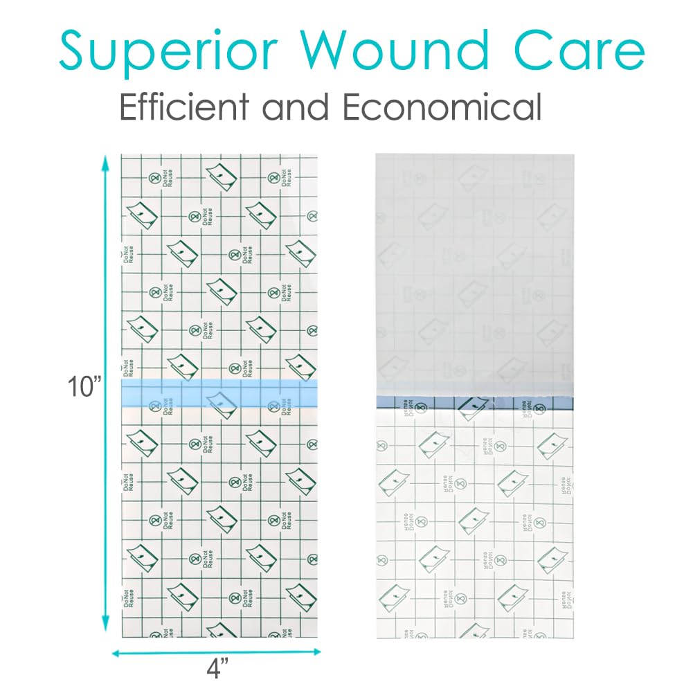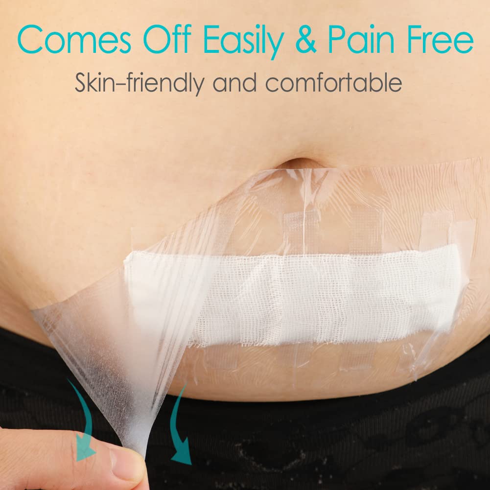 Long Waterproof Bandage for Knee Replacement Dialysis Catheter Shower Cover Shield Transparent Wound Dressing - 4" x 10" (Pack of 50) Not Waterproof? Not Stretchy? Does not adhere to body? Over priced? Finally - You have found the one! - Meet the world's best handy stretch adhesive shower protector for dialysis catheter. No longer worry about your dialysis cathaters or central line getting wet, PostOp Medical Wear offer the best peritoneal dialysis solution. Features: Seal area around a wound so getting in water would not get dialysis catheter wet. This large waterproof bandage covers your chest catheter, and keeps the wound site clean and dry while bathing. The transparent wound dressing shower cover sheet can be applied to torso, arm, or leg. Good barrier to protect sensitive skin. The waterproof chest port shower cover is easy to apply even without any assistance. Water resistant and don't tear your skin up when you remove them. The shower protector water barrier dialysis port cover shield is also latex-free and safe to use for those with latex allergies. Multi-Purpose: designed specifically to protect surgical wounds while they heal so the patient can shower, also are suitable for dialysis port, hip replacement, picc line, bandage, chemo port, chest port, PD catheter, G-tube, feeding tube, knee surgery, protecting wounds. Specifications: Size:(Approx.) 4" x 10" Package List: 50 Shower Protection Sheets per package Note: If you clean and prep the the area around it will stick much better, make sure if you have lots of body hair to shave it because it lessens the adhesion. Make sure you select the size that is slightly larger than the actual area or device needing coverage to allow for errors in placement. Give you freedom to take a shower with no worries and grab one today! - Click "Add to Cart" above to get yours now!