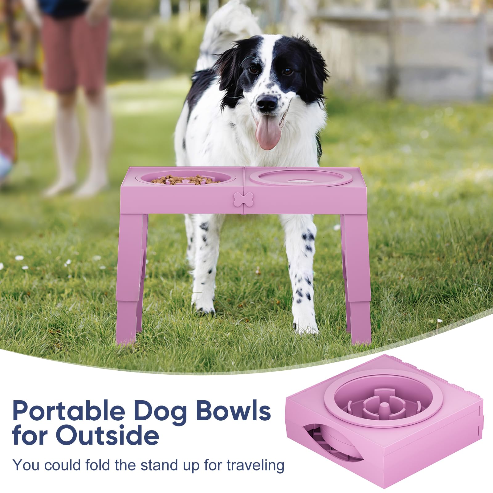 ADJUSTABLE HEIGHT RAISED DOG BOWLS: Our raised dog bowls for large sized dog can be adjusted to four different heights 3.15'' 9.09'' 10.63'' 12.20'' 13.78'', suit for all breeds and ages. Designed for large dogs, the maximum adjustable height is approximately 1.58 inch higher to fit large dogs needs.