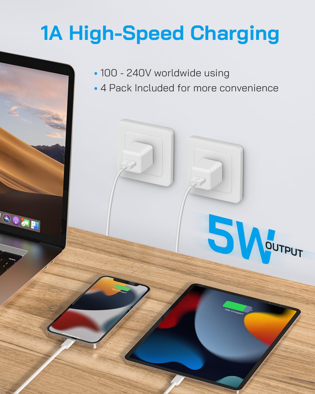【What You Get from Juusmart】1.Juusmart provide 12 months warrant y for this charger and lifetime technical support. 2.i Phone original USB power wall charger(4 Pack) + (4 Pack) 6FT MFi Certified lightning cable.