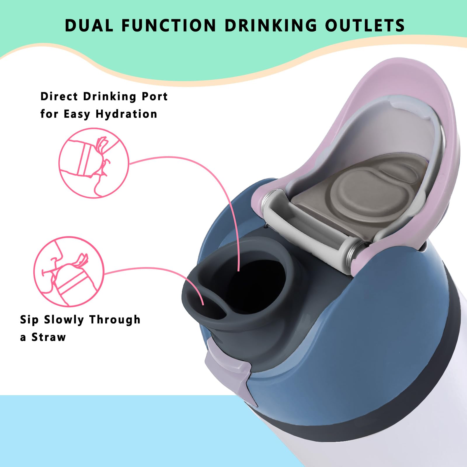 【2-in-1 Drinking Options】Enjoy two convenient drinking options with the compatible with Owala replacement lid. Featuring two drinking ports, it allows you to sip through a small opening or take a big gulp through a larger one. Plus, it’s compatible with your original straw, making it a versatile solution for easy hydration on the go.