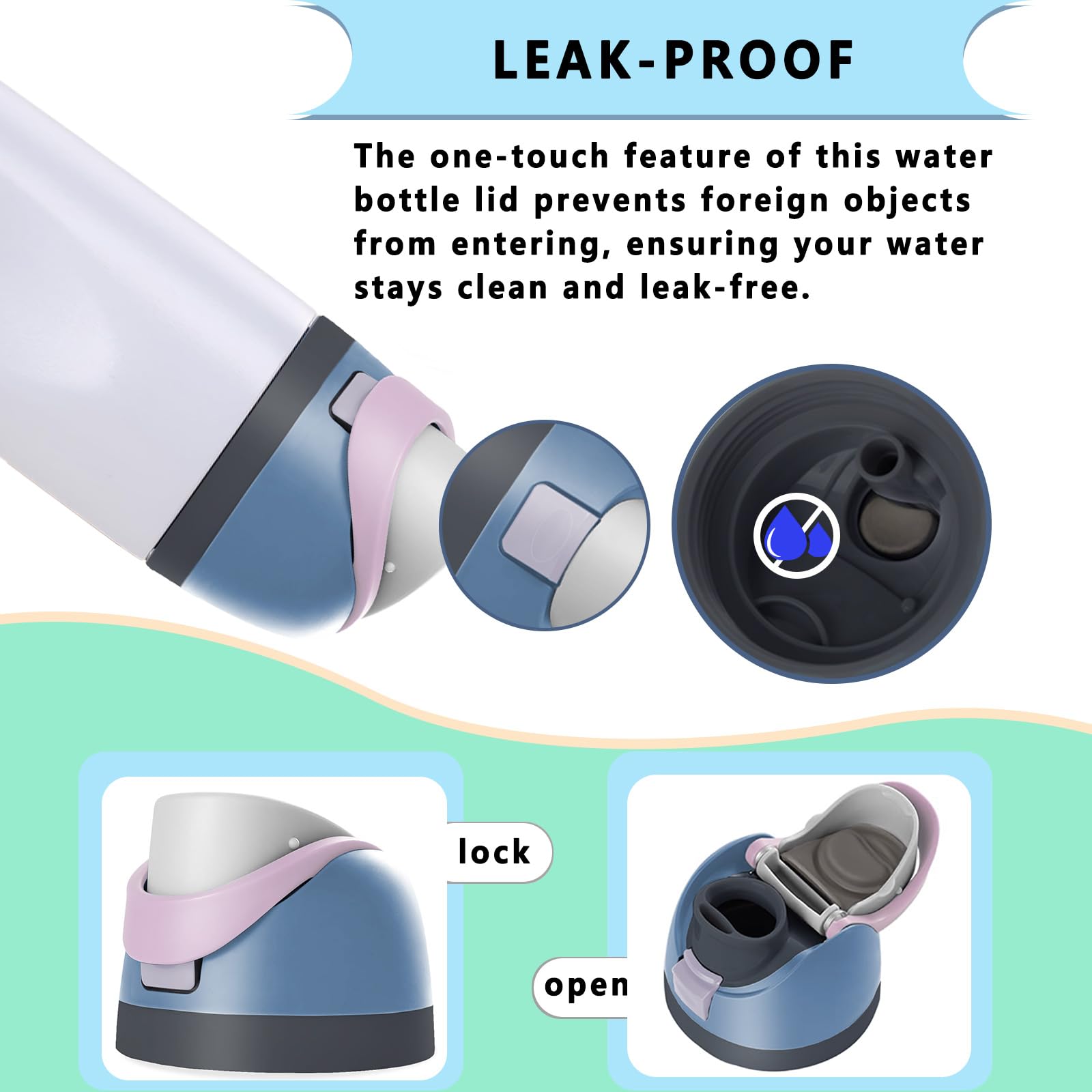 【One-Button Operation】The user-friendly one-button design allows easy opening and closing, catering to a variety of scenarios, whether at the gym, in the office, or outdoors. Perfect for any compatible with Owala lid replacement, this lid keeps your hydration routine effortless and convenient, whether using your for Owala cap on your 32 oz or 46 oz water bottle.