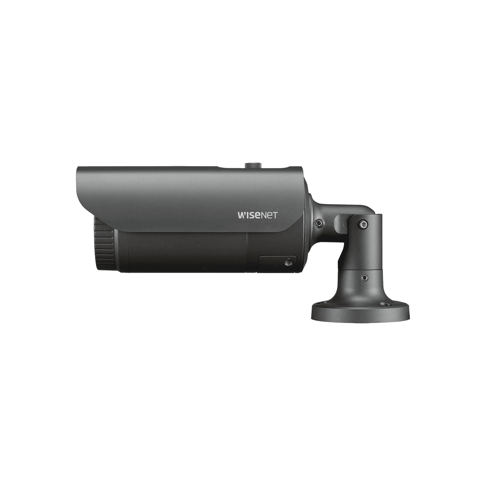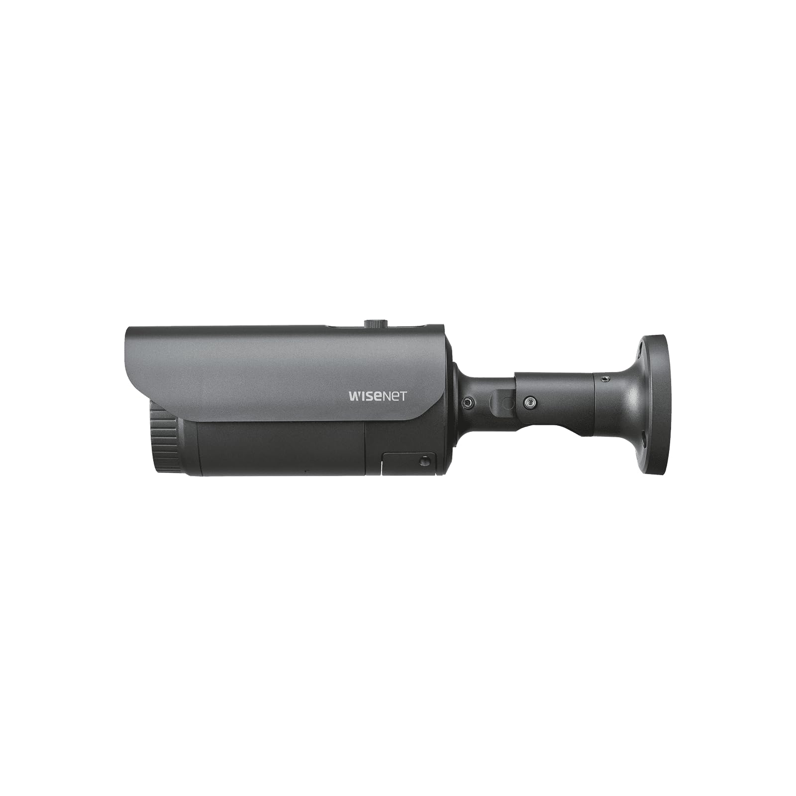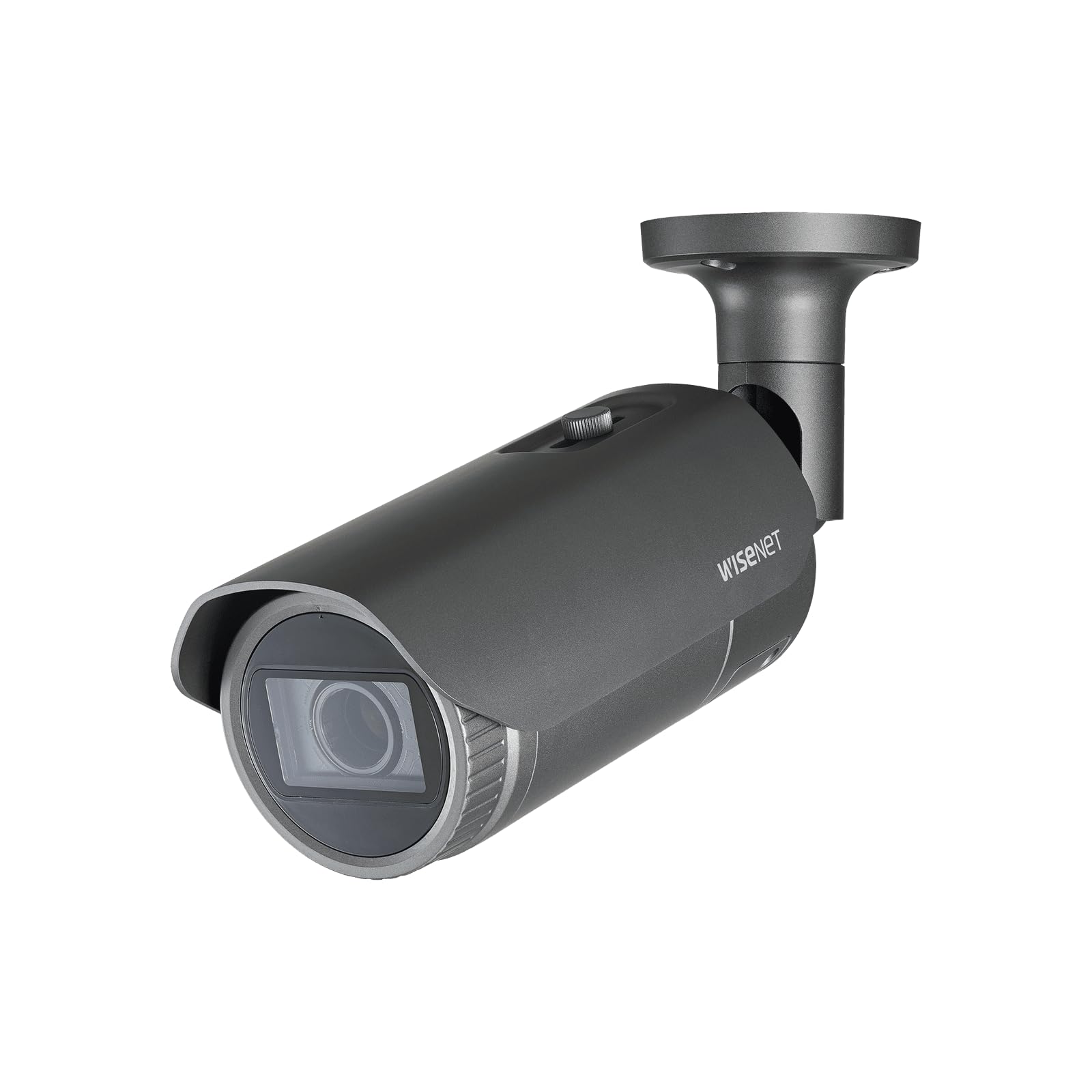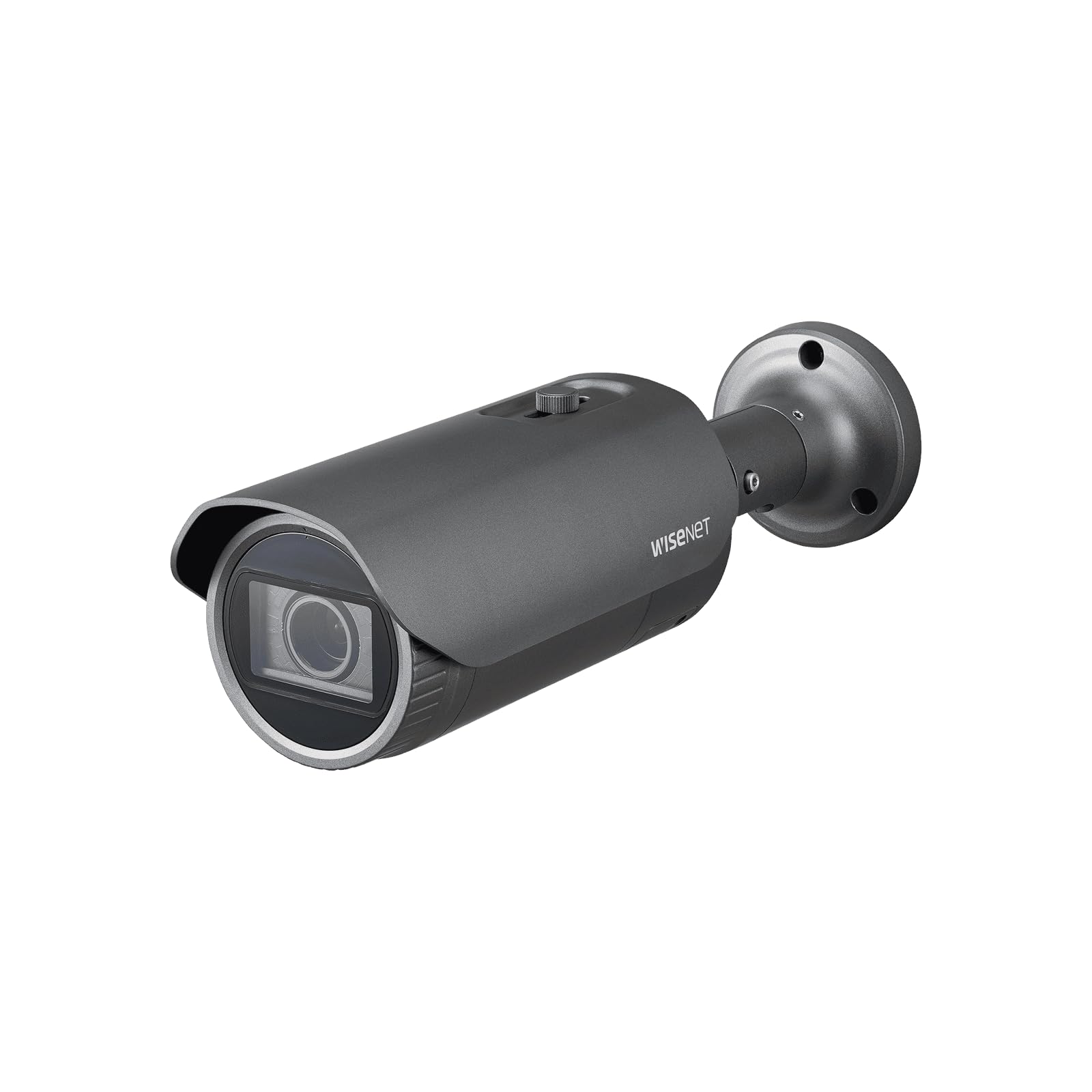 HANWHA | QNO-8080R | 5 MP Network IR Bullet Camera with Motorized Varifocal Lens, 3.2~10mm (3.1x) Motorized varifocal Lens, IP66 Weatherproof, RJ45 Connection.. ASIN:B07VZ1KD2D.. UPC:745559956223.. ● Max. 5Megapixel (2592 x 1944) resolution ● 3.2~10mm(3.1x) motorized varifocal lens ● 0.15Lux (Color), 0Lux (B/W, IR LED on) ● Max. 30fps@5MP (H.265 / H.264) ● H.265, H.264, MJPEG codec support, Multiple streaming ● Day & Night, WDR (120dB) ● Tampering, Motion detection, Defocus detection ● Micro SD / SDHC / SDXC memory slot (Max. 128GB) ● Hallway view, WiseStream II support ● IR Viewable length 30m