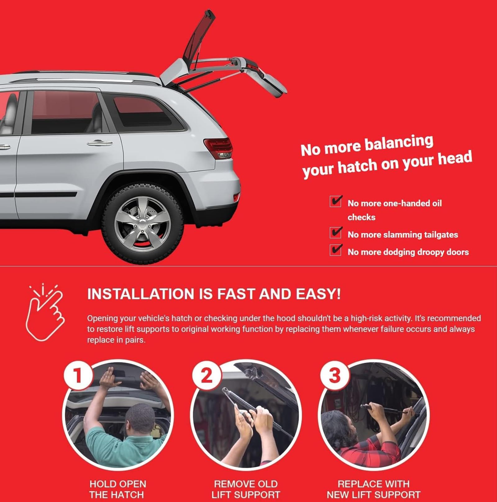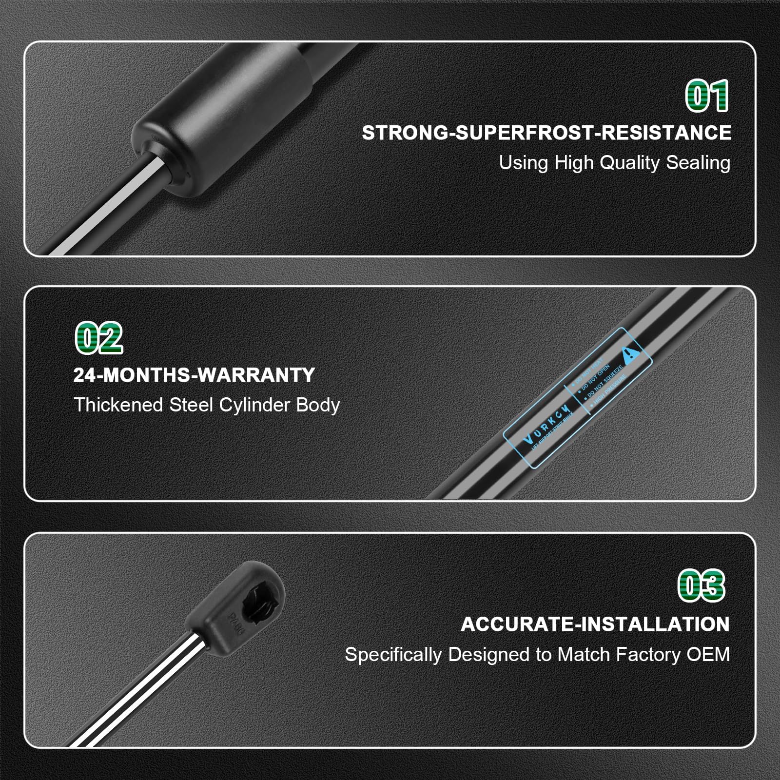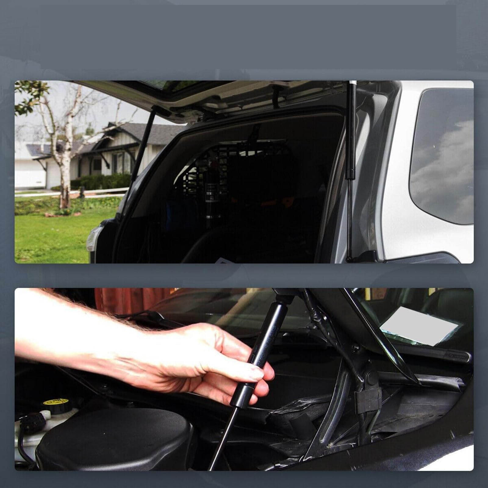 【FUNCTION ?】 Use compressed gas, contained in a cylinder and compressed by a piston, to exert a force to support the weight of front hood or rear liftgate tailgate trunk hatchback doors while they are open, no need to hold the door up with your head