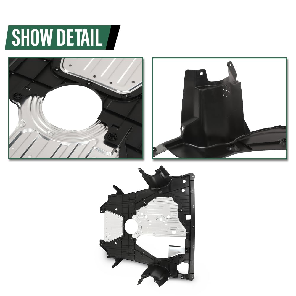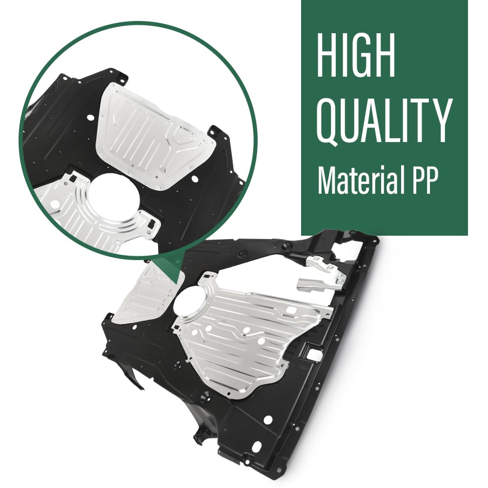 MATERIAL: The engine splash guard lower cover is made of durable PP material, which effectively prevents corrosion from water splashed while driving