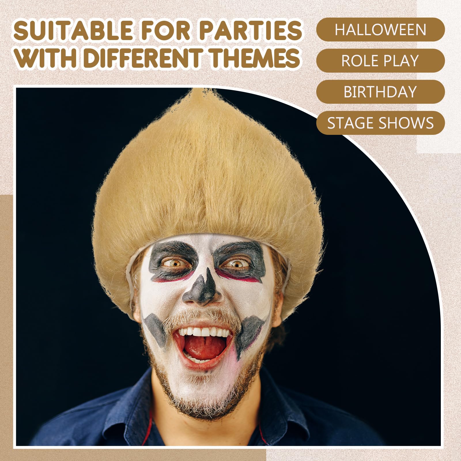 A Good Helper for Role Playing: this light gold wig is very suitable for role playing at Mardi Gras parties; It shows personality while not losing taste, and the color is bright and dazzling, allowing you to attract everyone's attention at theme parties