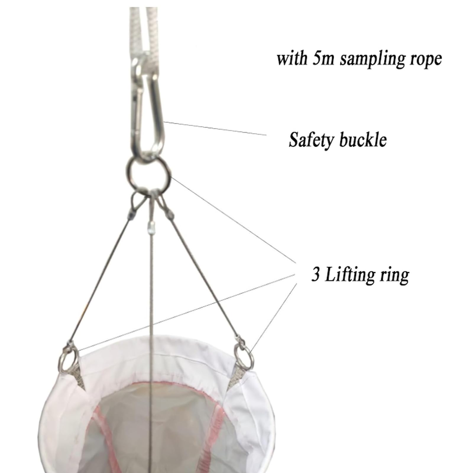 WHAT YOU WILL GET: 1 x Plankton collection net, 1 x Contains 5 m sampling rope, 3 x Lifting ring, 1 x Safety buckle