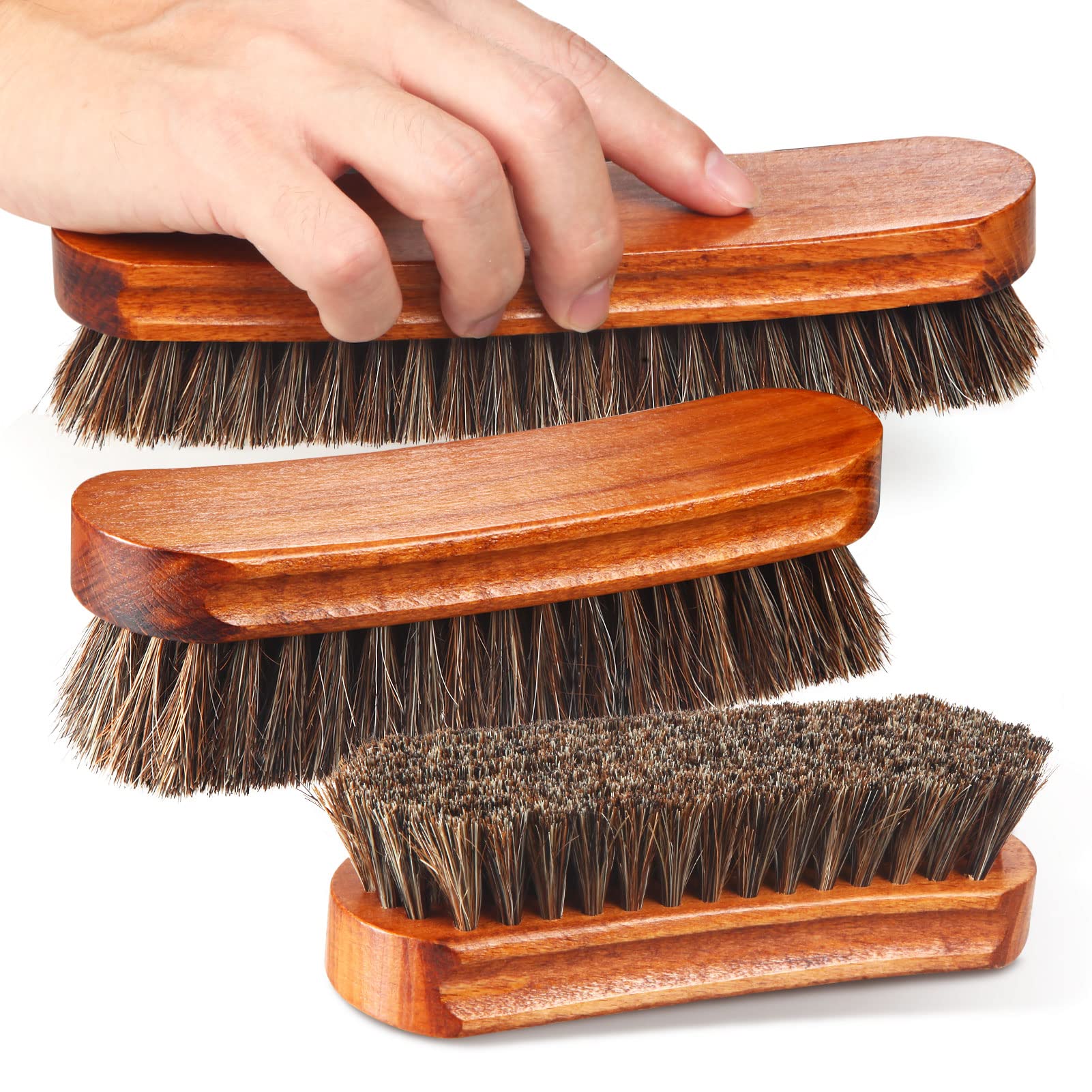 Shoes Shine Brush Set - There are 1 x extra large size horsehair shine brush, 1 x large horsehair shine brush and 1 x medium shoe brush