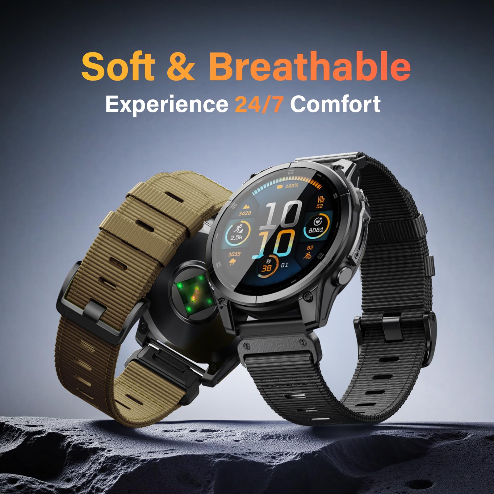 【Premium Material】For Fenix 6X band crafted from two layers of durable, thickened and encrypted 2mm nylon. More rugged and durable. It provides excellent durability and comfort for all-day wear even during intense activities.