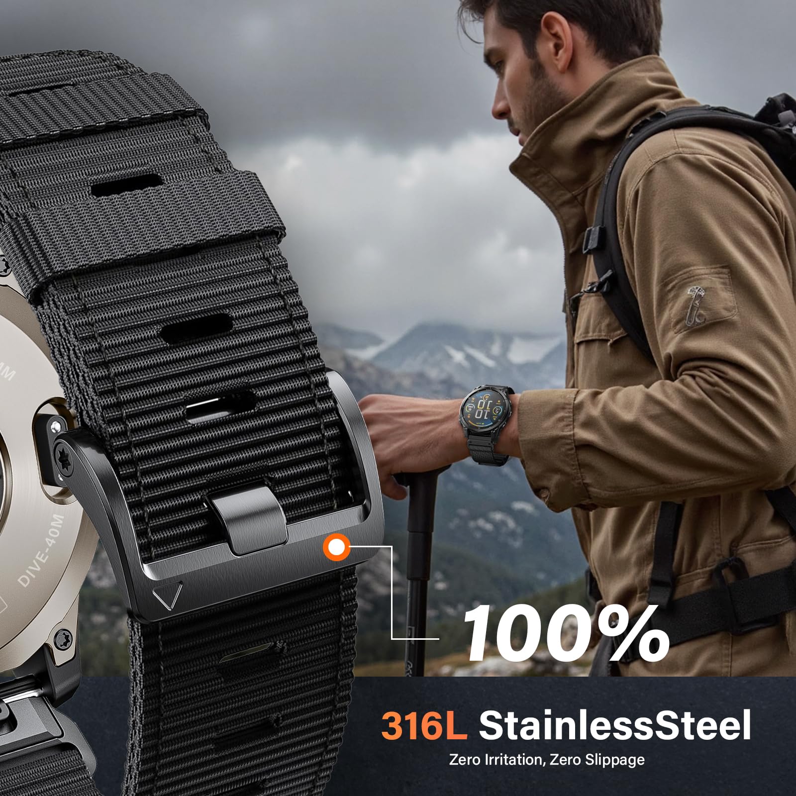 【Upgrade Connectors】 The Fenix 7X watch band integrates precision-engineered 1:1 ratio connectors constructed from 316L stainless steel. Ensures that your data readings remain accurate and don't worry about the buckle rust-resistant.