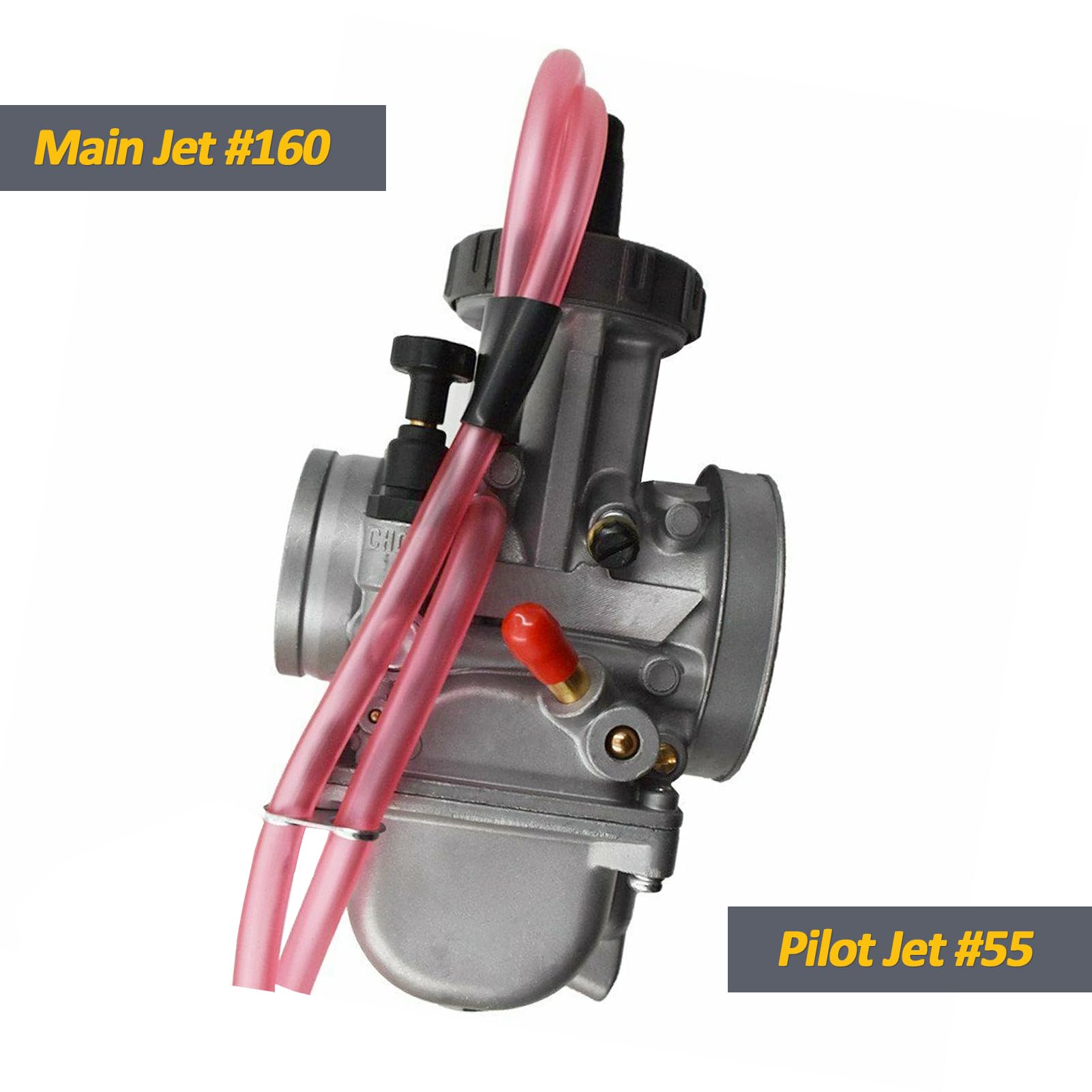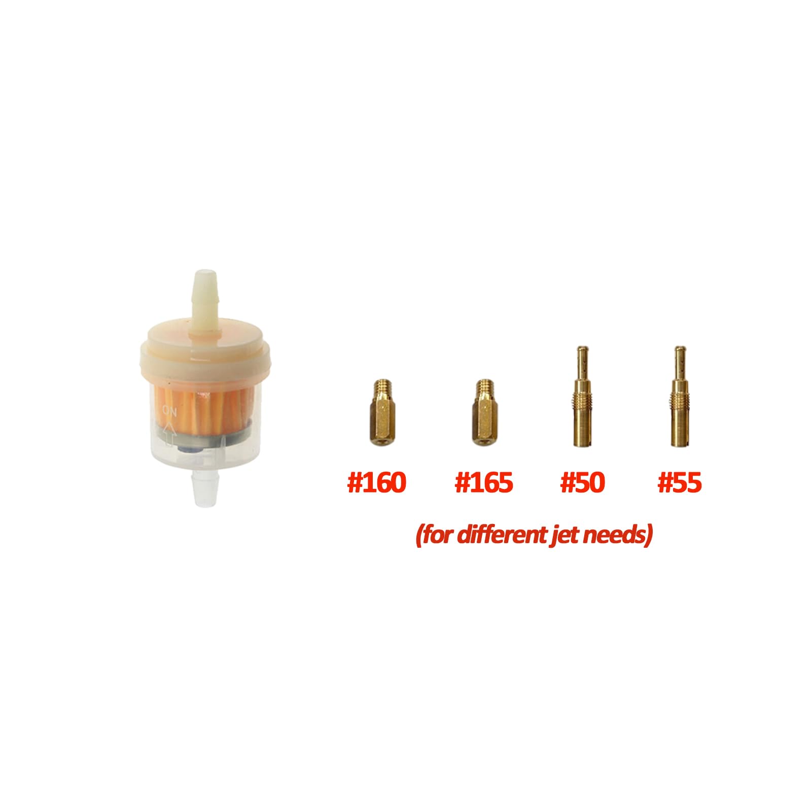 [PACKAGE]: 1× PWK 35mm carburetor (main jet #160/pilot jet #55), 1× fuel filter, extra jets #50 55 160 165
