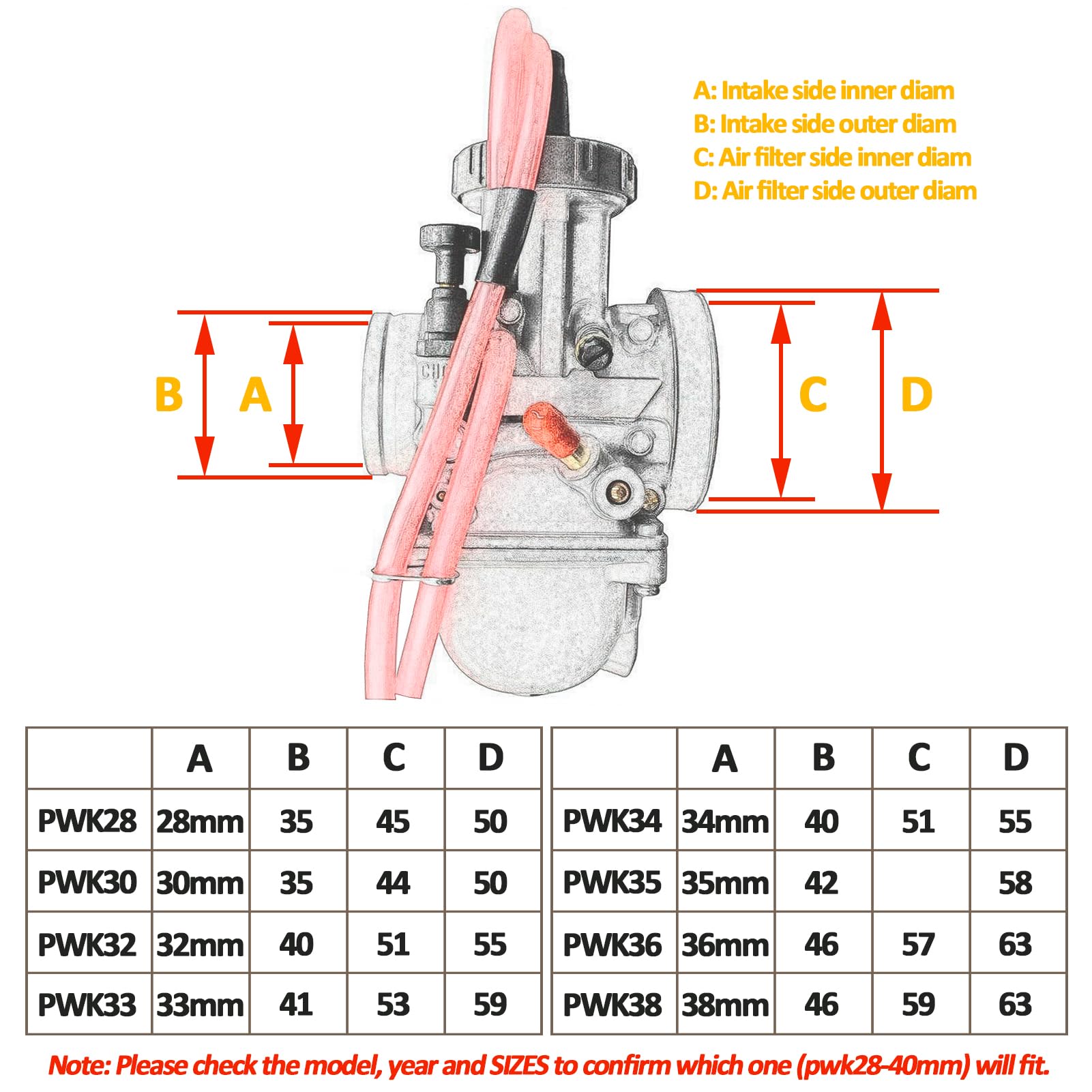 [NOTE]: Inner diam of intake side 35mm, please DO CHECK THE SIZES (more details in pics) to confirm if it fits.