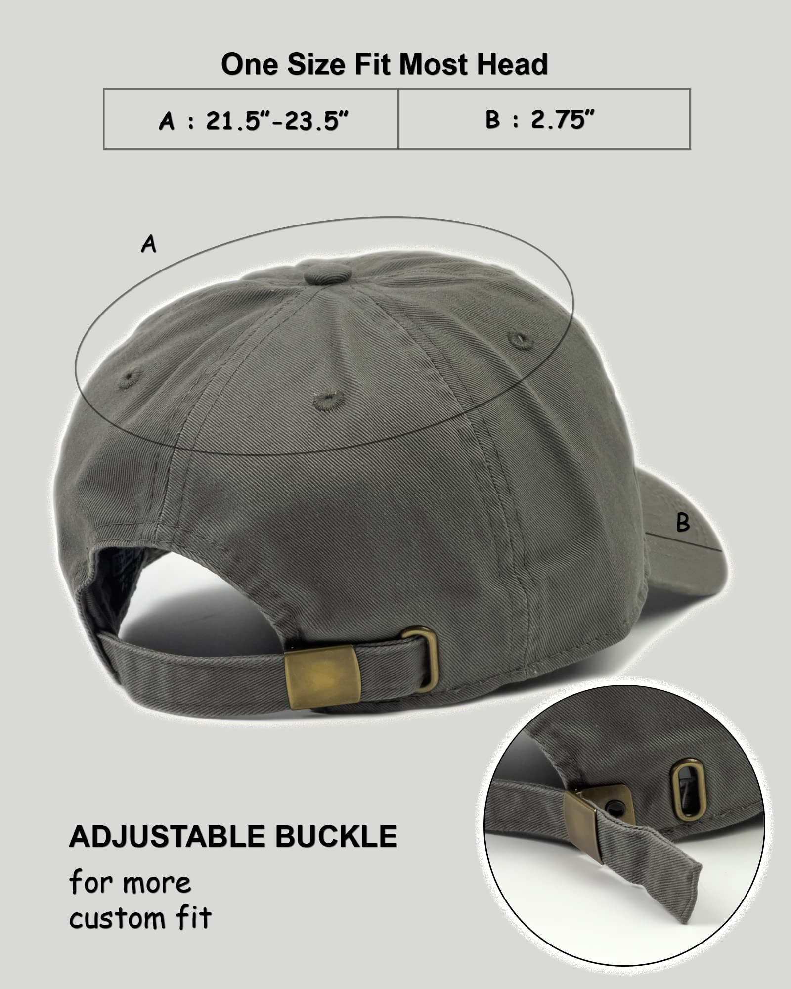 Adjustable Metal Buckle Back Closure : Great Fit for All Head Size. Hat Size Measurements : 21.5" - 23.5"