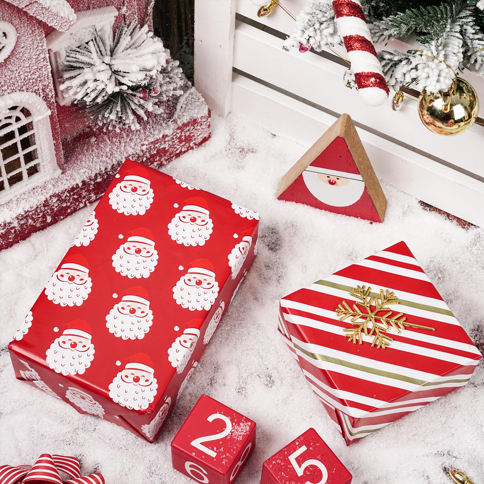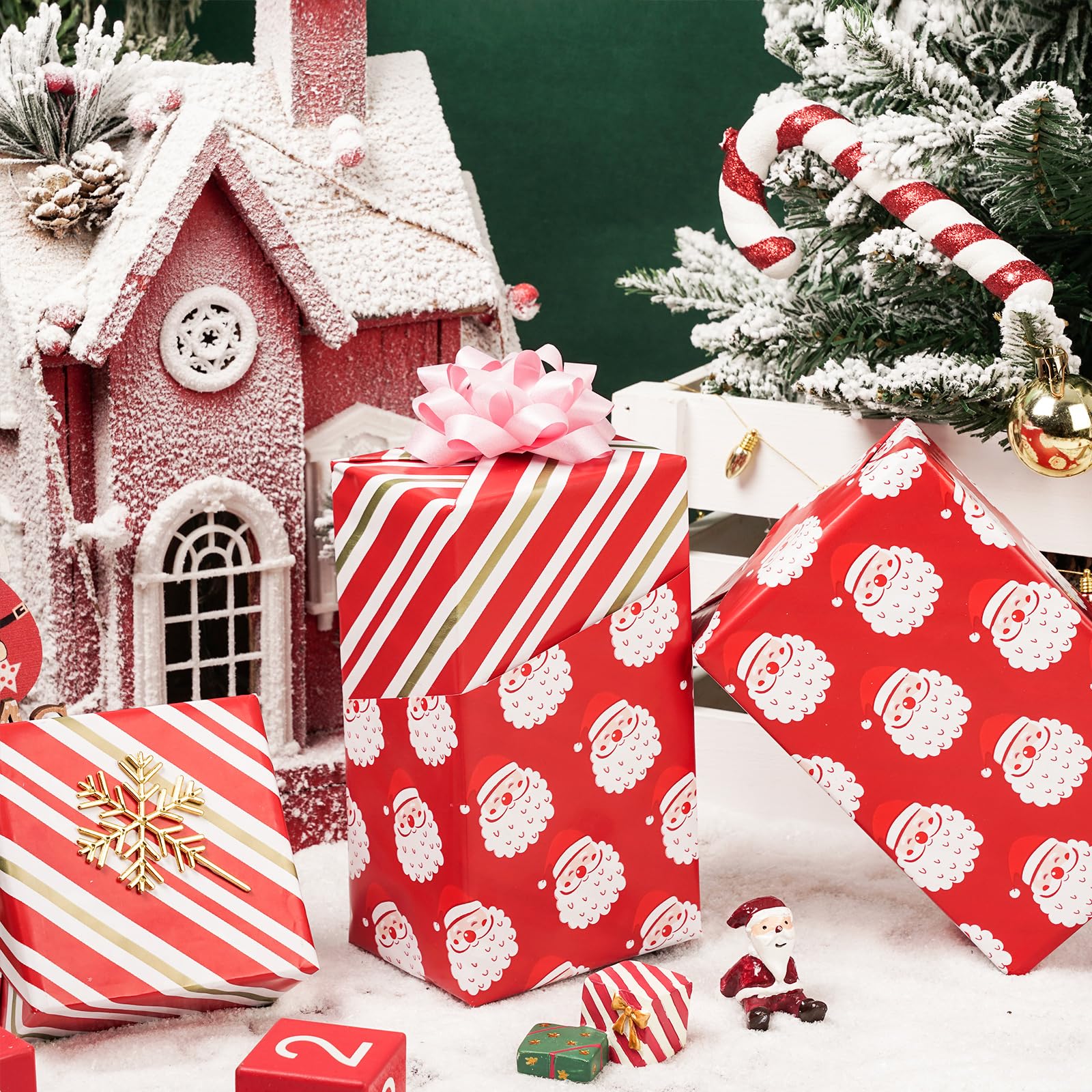 Design & Size: Each roll is 17.5 Inches x 32.8 Feet, jumbo holiday paper can wrap many gifts, design make the gift wrapping be more eye-catching.