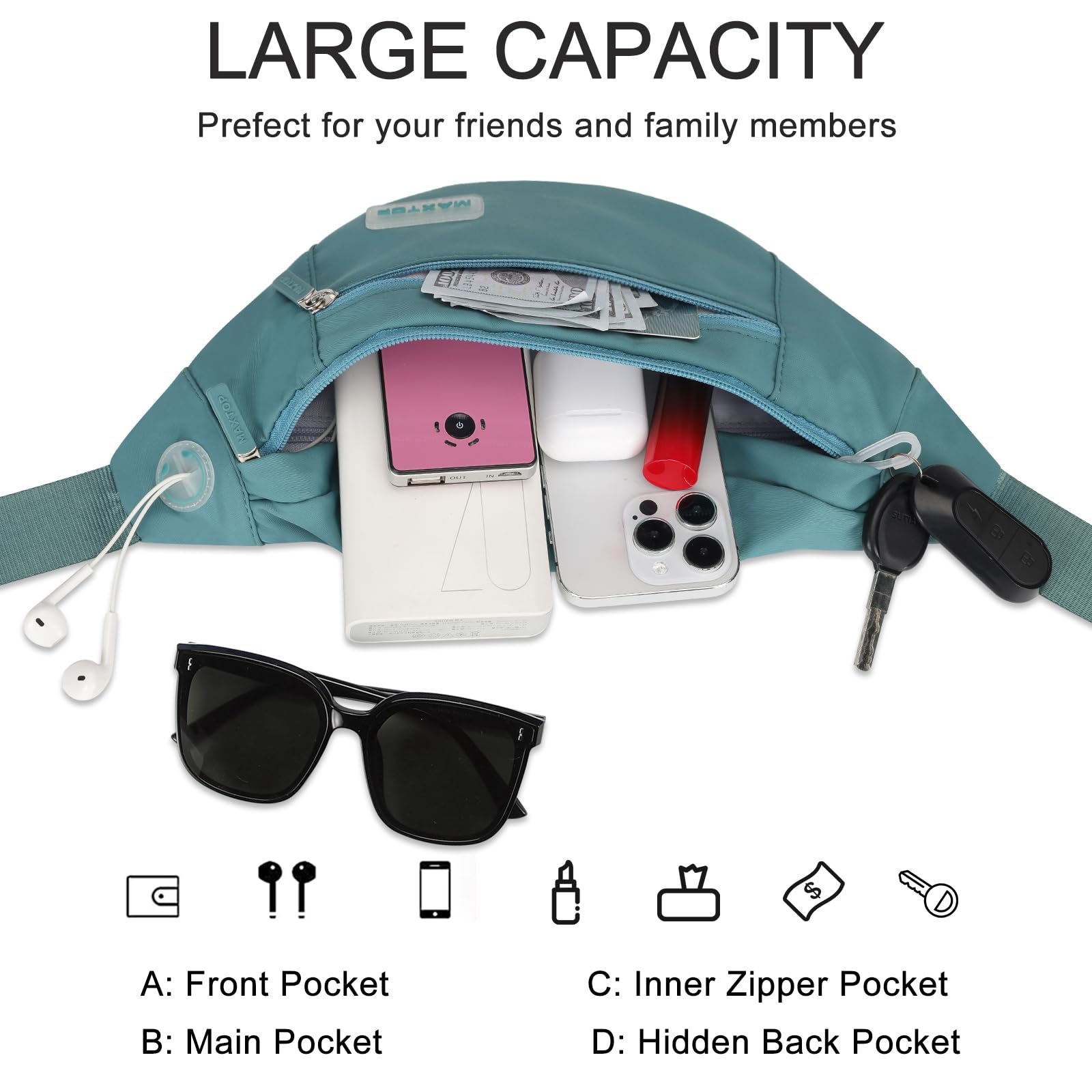 Best Travel Essentials and Daily Essentials as Gifts ,Enjoy Various Activities and Festival Hands-Free: Easily hold the most needed items with our large fanny pack.,include most size phones,passport, keys,ID,standerd water bottle and other items.Perfect for various activities such as Shopping,Traveling,Walking,Cycling,Hiking,Party,Festival and so on. A great ThanksGiving and Christmas Gift for Women Men and Family.Let's Hands-Free and enjoy a better festival and travel time!