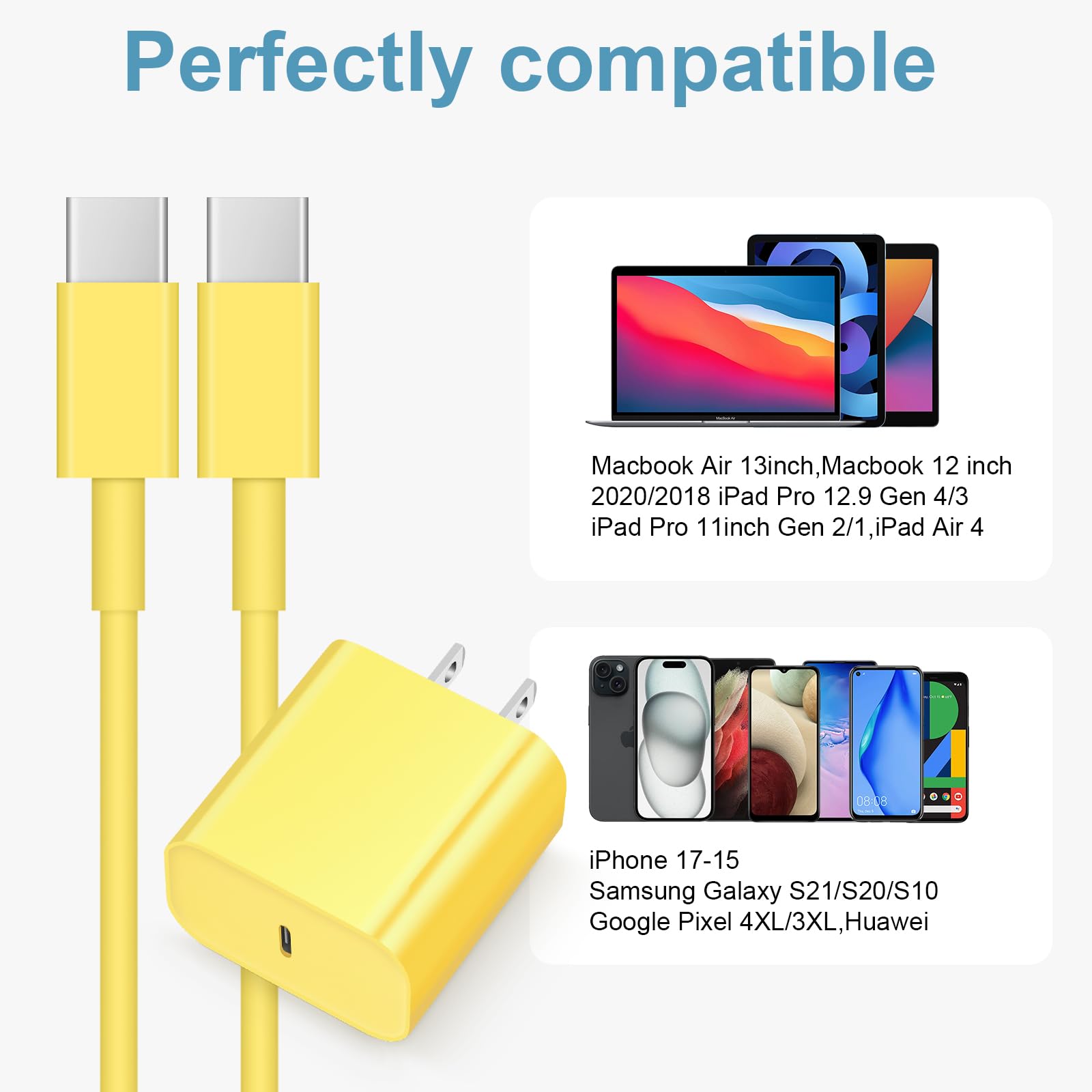 【iPhone Charger USB C】Use the official USB-C cable 20W USB C wall charger to access fast-charging iPhone Air/ iPhone 17/17 Plus/17 Pro/17 Pro Max/iPhone 16/16 Plus/16 Pro/16 Pro Max/iPhone 15/15 Plus/15 Pro/15 Pro Max/ 2021/2020/2018 i Pad Pro 12.9/11 inch,i Pad Air 4, Mac Book Air 13 inch, Mac Book 12 inch, Gen 4/3, i Pad Pro 11 Gen 2/1, i Pad Air 4, Google Pixel 4/ 4 XL / 3a XL / 3 / XL / 2, Samsung Galaxy S8 S9 S10 S20 Plus, Note 10, LG and more.