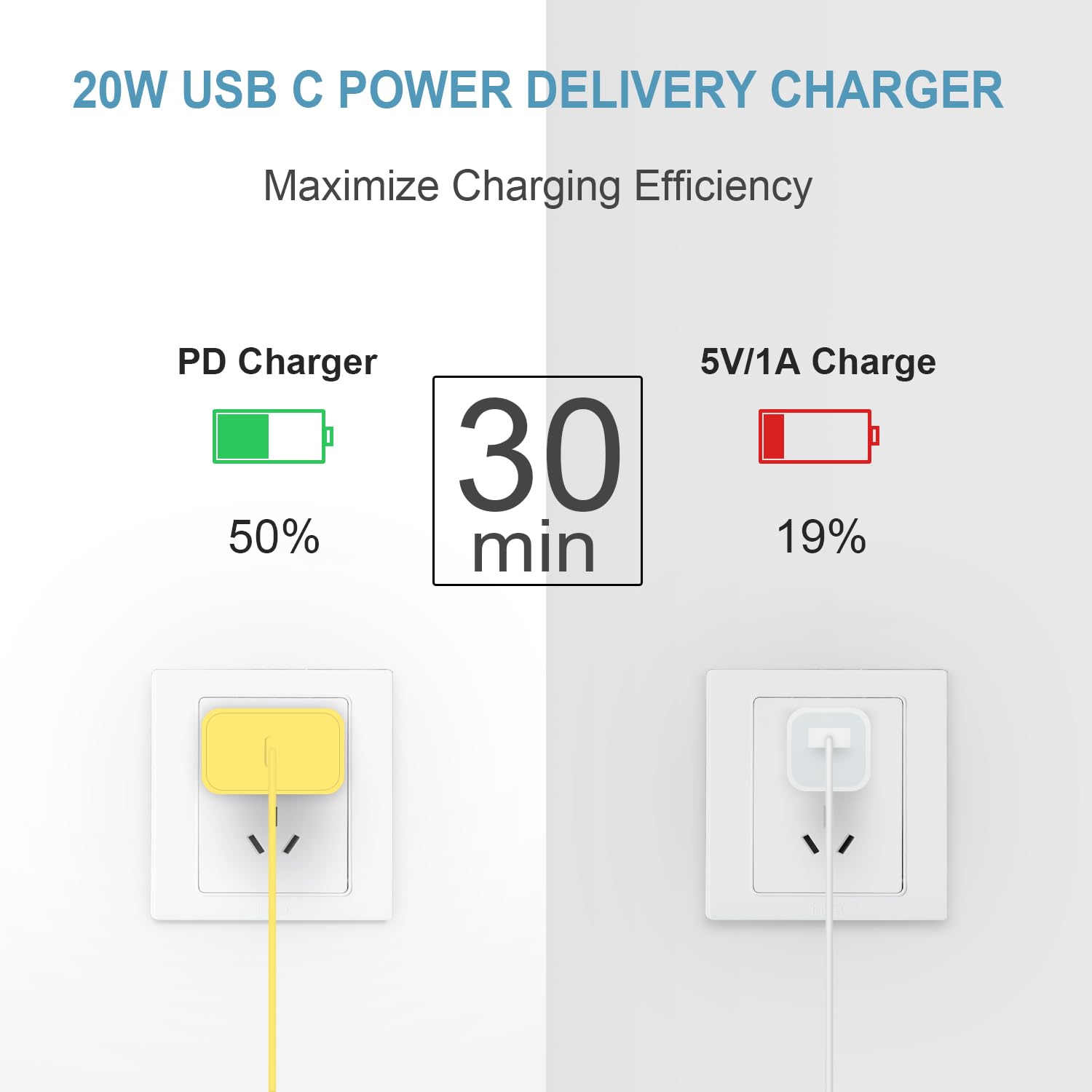 【iPhone 16 Charger】20W PD USB Type C power delivery wall plug, PD adapter 3.0 Quickly Charge , USB-C port provides Max 20W output power, 3X faster than standard USB charger. charging your up to 50% in just 30 minutes for Pad Pro Charging, At 3A Maximum, Helps You Work Efficiently.