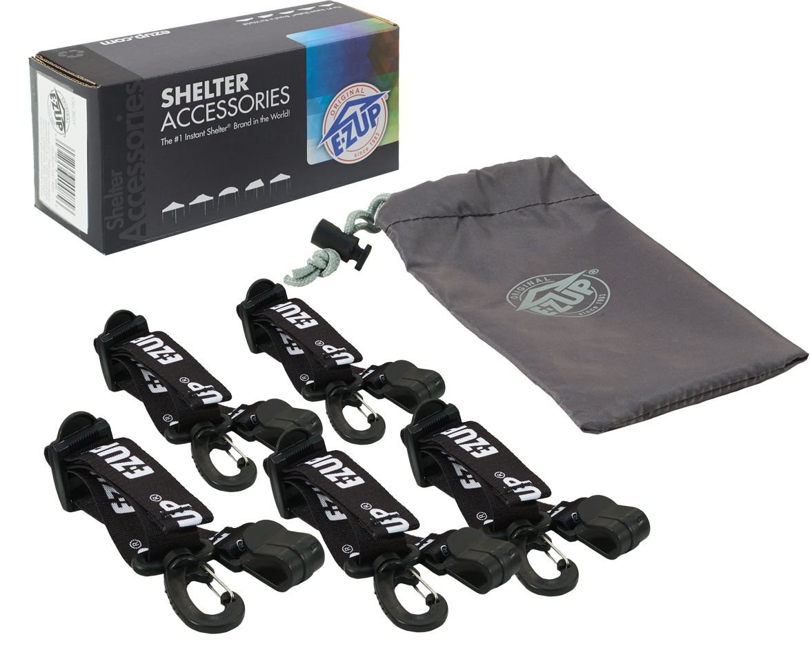 New E-Z clips make it possible to hang just about anything from the frame of your E-Z up shelter-from Banners & signs to swim towels to lightweight gear! E-Z clips are strong, compact, & come in sets of five with their own accessory tote. New E-Z clips are a must-have accessory for every E-Z up shelter owner.