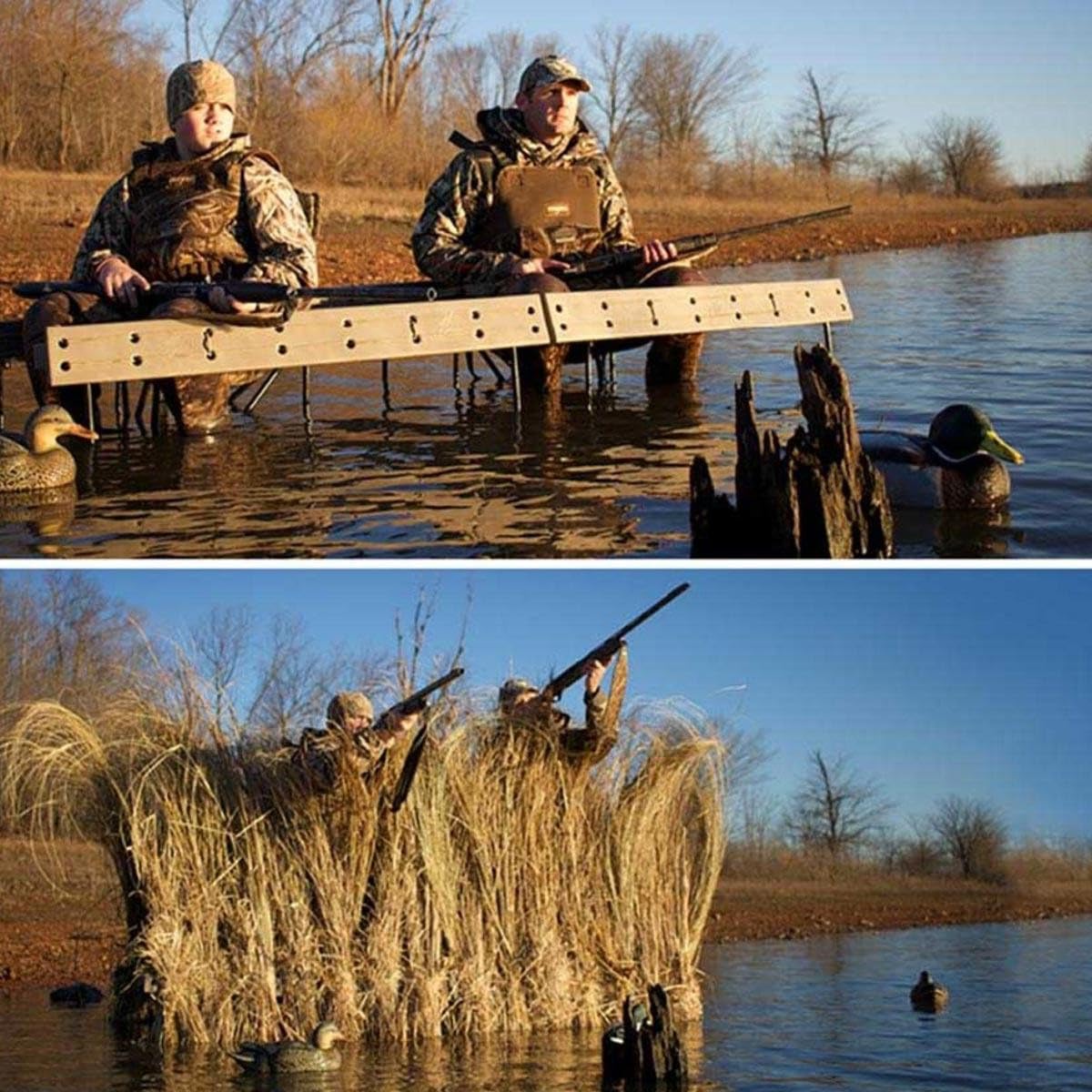 Fast Strike Complete Two - Arm Blind PackageIT'S THE ONLY BLIND YOU'LL EVER NEED. HUNT ANY GAME. ANY HABITAT. ONE BLIND. The Fast Strike Blind System allows you to take advantage of your natural surroundings so that you can hunt deer in the timber, disappear from ducks in the marsh or blend into cornstalks to decoy geese - all with the same blind. You simply insert any natural material (grass, reeds, limbs, branches) into the patented bungee system to disappear. Unlike most blinds that create an unnatural profile in the field, the Fast Strike Blind System uses natural materials to blend into the environment. You not only blend in along the field edge but you blend in whether you are in the middle of the marsh to the middle of the field. It's simply the most versatile blind on the market. Fast Strike Blinds are called a system for a reason. You can start with one, two - arm blind and add individual (48") arms to build larger, multi - person blinds. Replacement carrying straps and poles are also available. FeaturesWind causing material to flapLeaving the Fast Strike blind out in the elements to be damaged by rain or windSetting it up days in advance so that animals get used to itIncludesTwo armsCarrying strapThree poles (one arm 4'), (two arm total length 8' )Fast Strike Complete Two - Arm Blind Package IS THE FAST STRIKE BLIND SYSTEM GOOD FOR ALL HUNTING?The Fast Strike Blind System allows you to take advantage of your natural surroundings so that you can hunt deer in the timber, disappear from ducks in the marsh or blend into cornstalks to decoy geese - all with the same blind. You simply insert any natural material from the area you are hunting (grass, reeds, limbs, branches) into the patented bungee system to disappear. Unlike most blinds that create an unnatural profile in the field, the Fast Strike Blind System uses natural materials to blend into the environment.