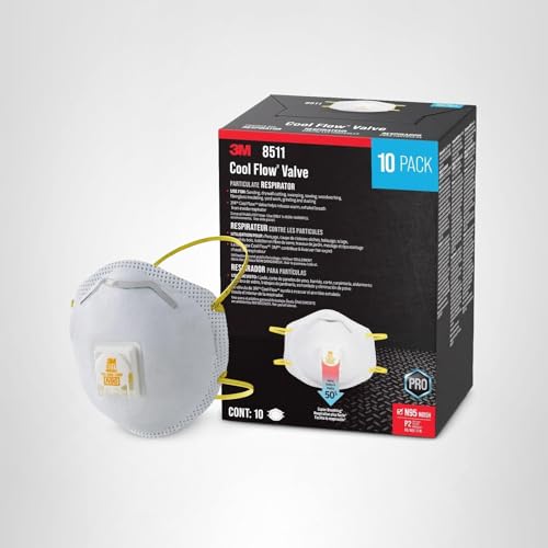 Product Description Part of our Pro Series, the 3M Cool Flow Valve Particulate Respirator 8511 is designed with the pro in mind to help bring you protection and comfort. The Cool Flow Exhalation Valve helps release warm and moist exhaled breath from inside the respirator. This N95 respirator features Advanced Electrostatic Media that enhances the capture of airborne particles and is designed for easy breathing. An adjustable M-noseclip helps provide a custom, secure seal. Whether you're hanging drywall or sanding a floor, rely on the trusted protection of the 3M Cool Flow Valve Particulate Respirator 8511. From the Manufacturer 3M Tekk Protection 10 Pack Respirator Cool Valve Filtering Facepiece Particulate Respirator N95 Lightweight Comfortable "M" Nose Clip Recommended For Sanding & Preparation Before Painting NIOSH Approved: N95.