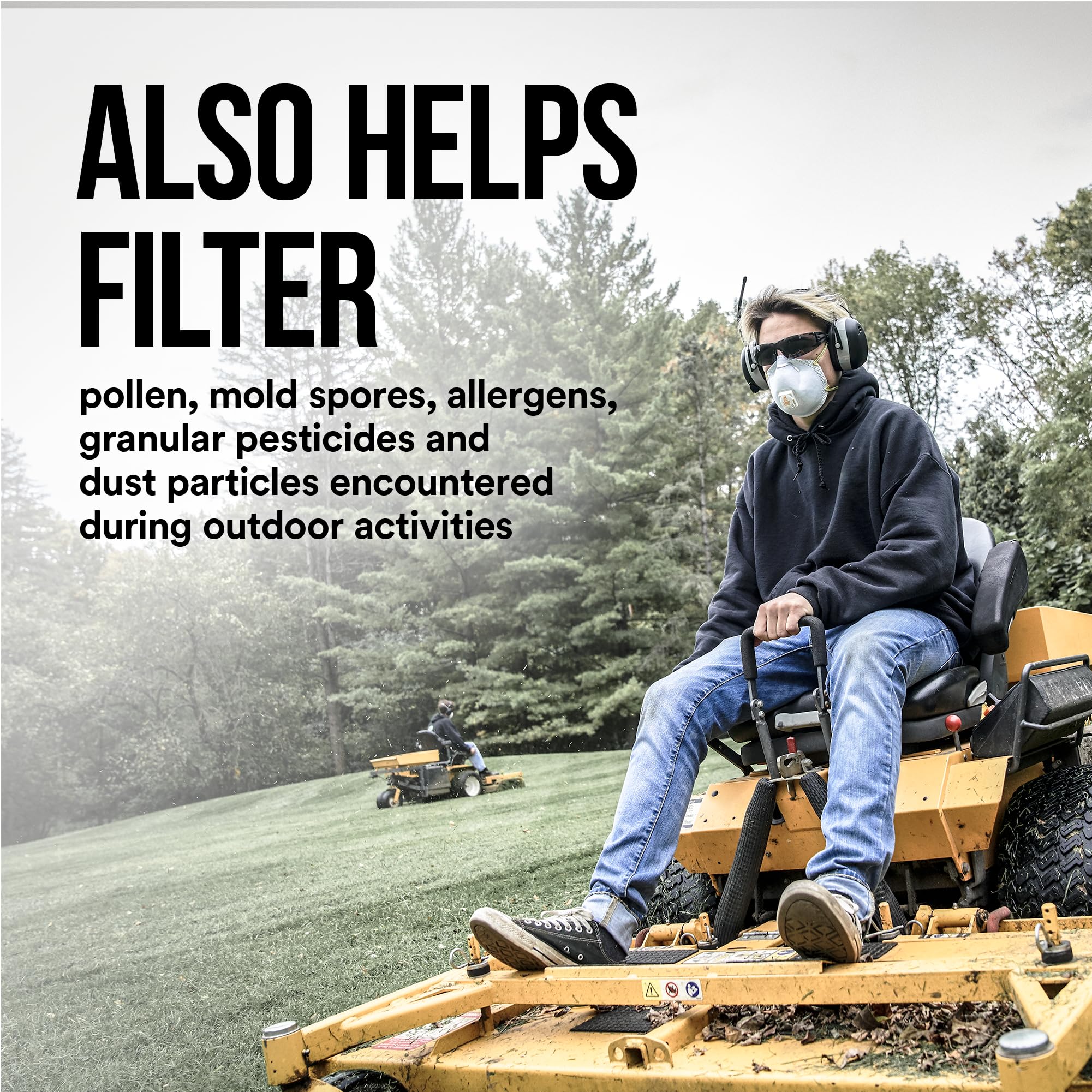 NIOSH-APPROVED N95 for at least 95 percent filtration efficiency against certain non-oil-based particles and aerosols
