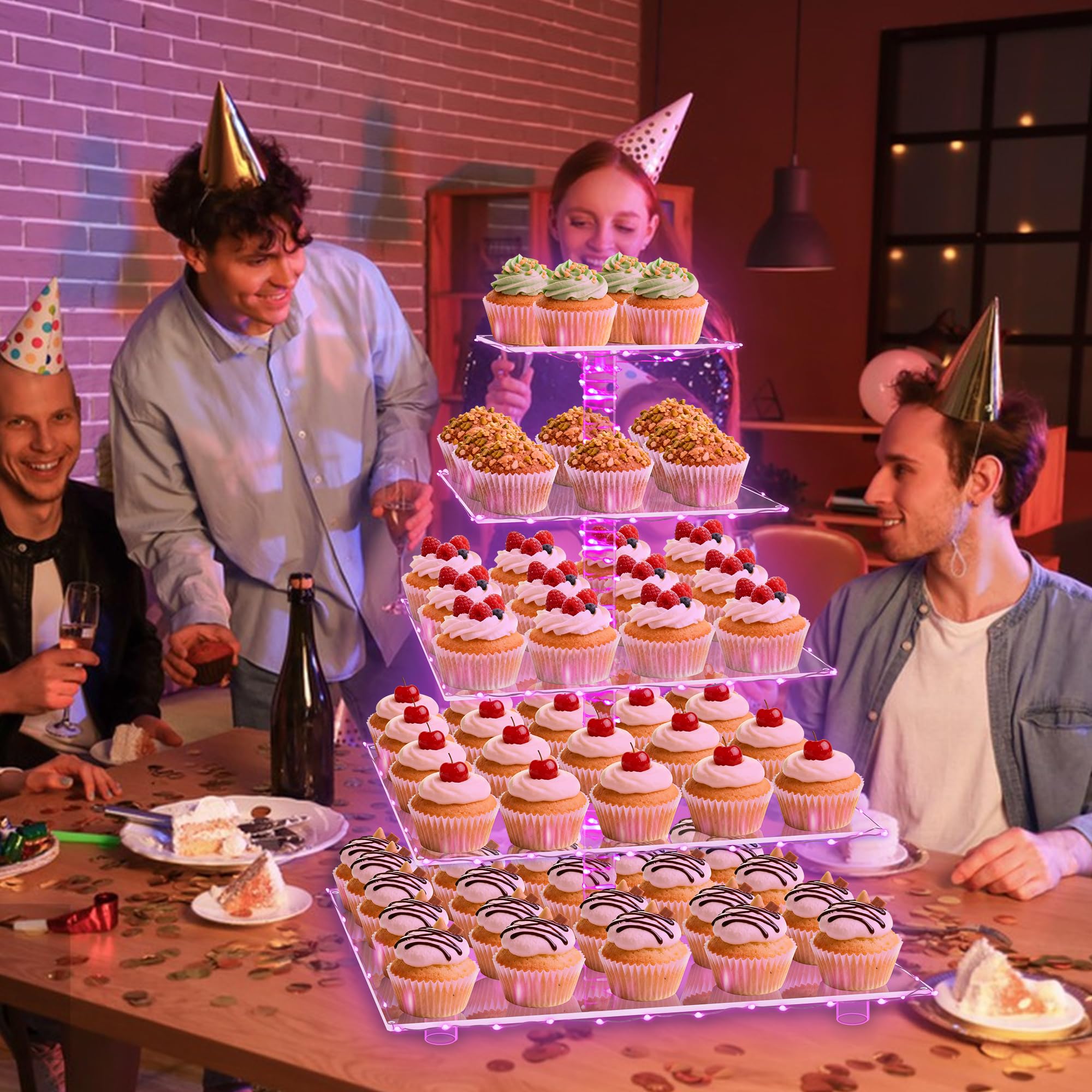 【PREMIUM DESIGN】Our cupcake stand has four acrylic plates with 4.7” distance between them. You can remove any of the superior plates and reassemble them freely. Each pastry rack is made with premium 4 mm thick acrylic, being very durable and resistant.