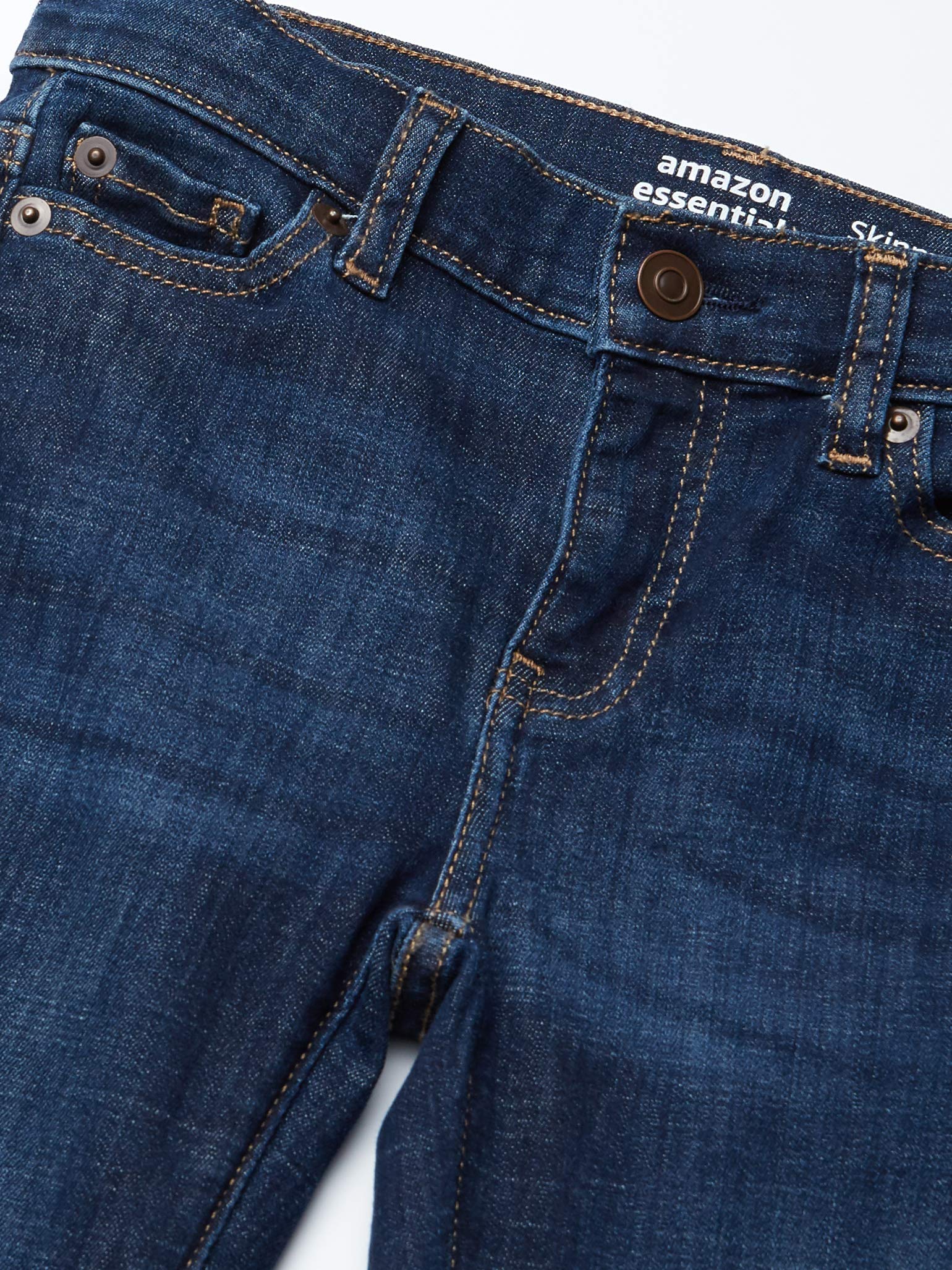 Description These skinny-fit jeans offer a snug fit through the hip, thigh, and leg, enhanced by our super stretch denim that maintains its shape throughout the day. These jeans are designed with a classic five-pocket style, making them a versatile staple in your child's wardrobe. With attention to detail, the jeans include a front zipper fly with a shank button closure and an internal adjustable waist for a customizable fit. Enjoy the practicality and fashionability of these skinny jeans so your little girl stands out with confidence. Crafted with a special inseam and leg opening, these jeans deliver both timeless style and modern comfort, making them an ideal choice. Embrace affordability without losing quality, thanks to Amazon Essentials' long-lasting, everyday clothing at its finest. Great for any occasion, these jeans will surely become her favorite go-to pair.