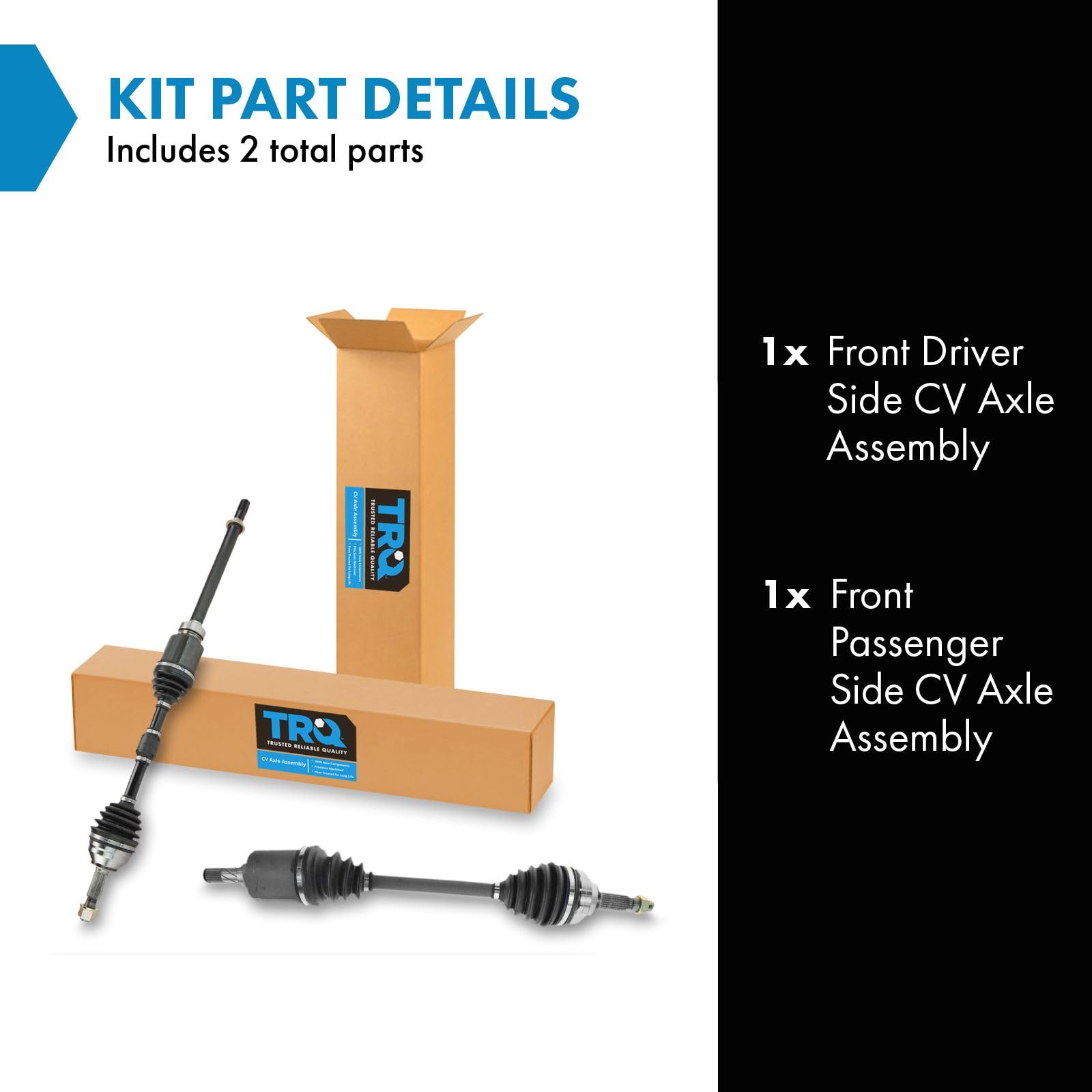 Kit Includes: (1) Front Passenger Side CV Axle Assembly; (1) Front Driver Side CV Axle Assembly