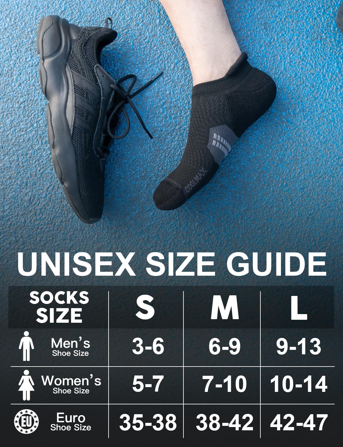 【Advanced COOLMAX & Organic Bamboo viscose Blend】: Keep your feet dry and fresh with our running socks! The COOLMAX fabric quickly wicks away sweat, while organic bamboo viscose helps minimize odors and keeps your socks feeling clean. Enjoy superior comfort and freshness with this innovative sock technology!