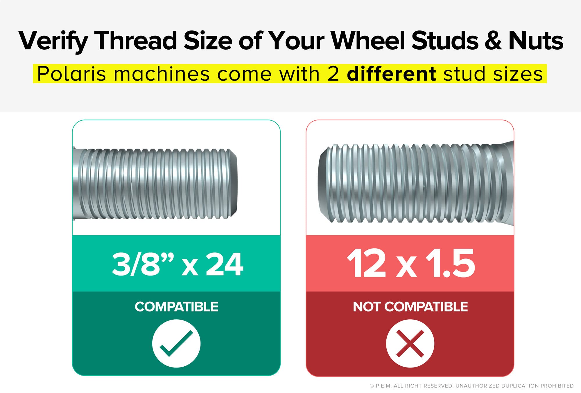 RockTrix Wheels Offroad ATV Rims and Lug Nuts - Fits machines with 4/156 Bolt Pattern, a hub bore no larger than 131mm, and 3/8"-24 wheel studs. Works with various ATV, UTV, Side by Side, Quads. Verify fitment by checking that your machine's bolt pattern, center hole, offset, and stud thread size match that of our ATV wheels and nuts before making your purchase.