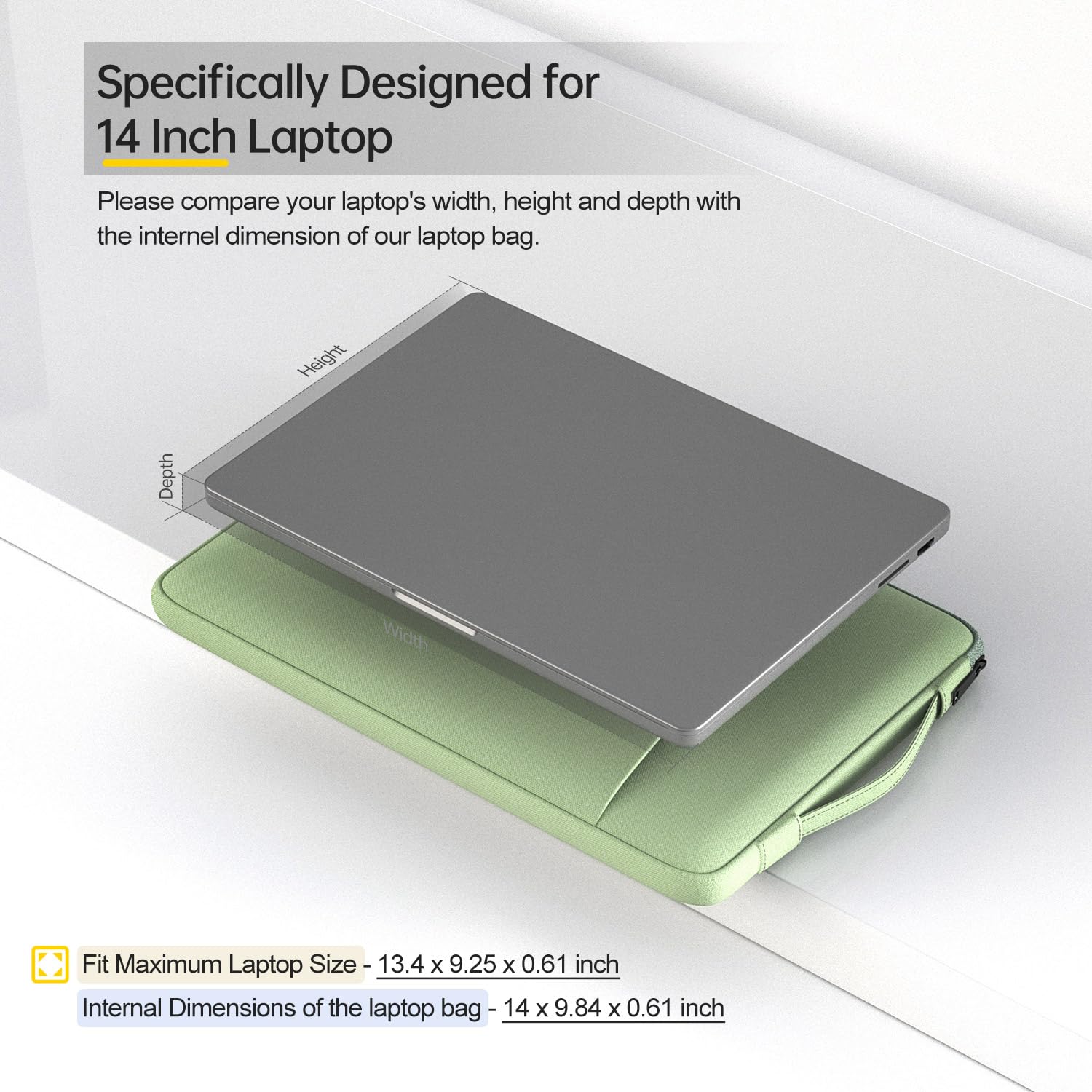 【Measure Your Laptop Internal Dimensions】Internal Dimensions - 14" x 9.84" x 0.61", Fit Maximum Laptop Size -13.4"x9.25". Please measure your laptop less 0.59 inch than the sleeve's internal dimensions in both length and width.