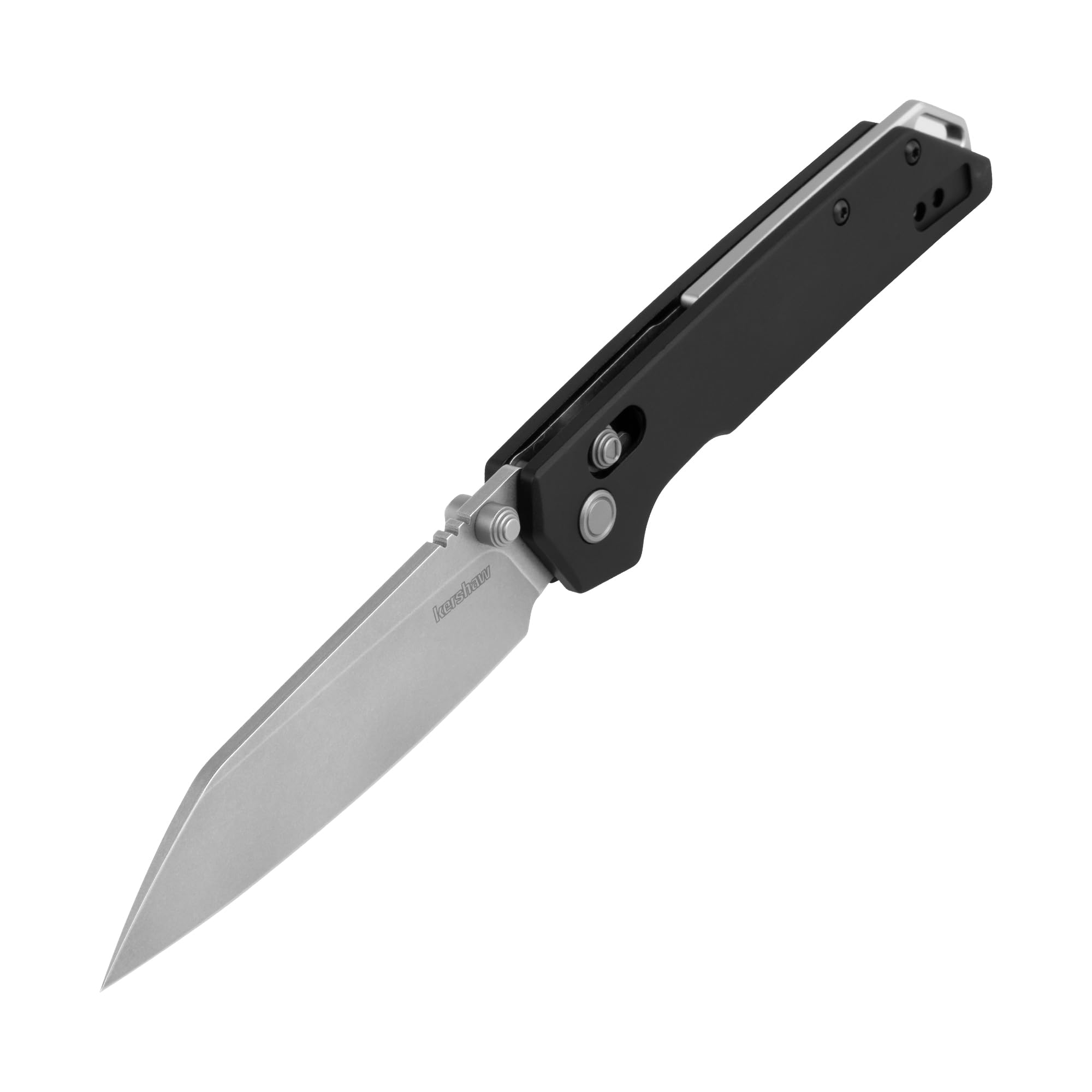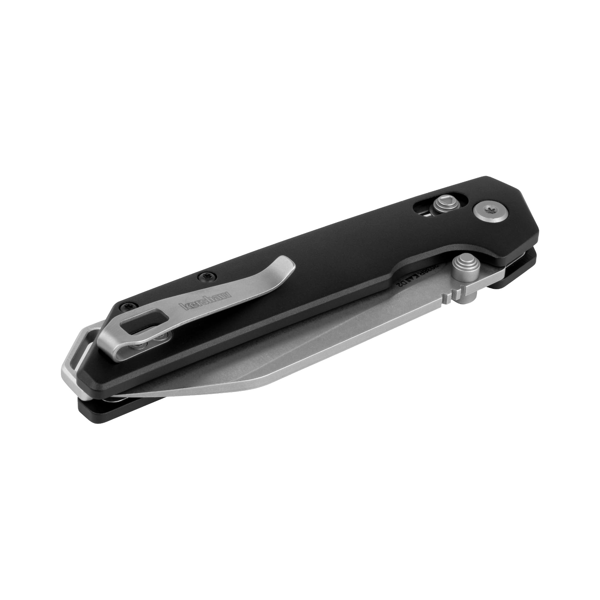 Modern design meets standout hardware in the Kershaw Iridium – a full-sized EDC knife strong enough for any task. With a 3.4” reverse tanto blade made from highly wear resistant D2 high-carbon steel, this blade is made for long term use. Stonewashed blade finish hides scratches and gives the blade an industrial look. Paired with a black anodized aluminum handle with bead-blasted accent pivot, backspacer and lanyard hole. The DuraLock mechanism securely holds the blade open with a steel crossbar and allows safe closing with a two-sided handle button, while the KVT ball-bearing system ensures smooth blade deployment. Deep-carry reversible pocketclip allows for easy left- or right-hand carry in tip-up position. A perfect blend of modern style and everyday utility, the Kershaw Iridium is ready to handle whatever the day brings.