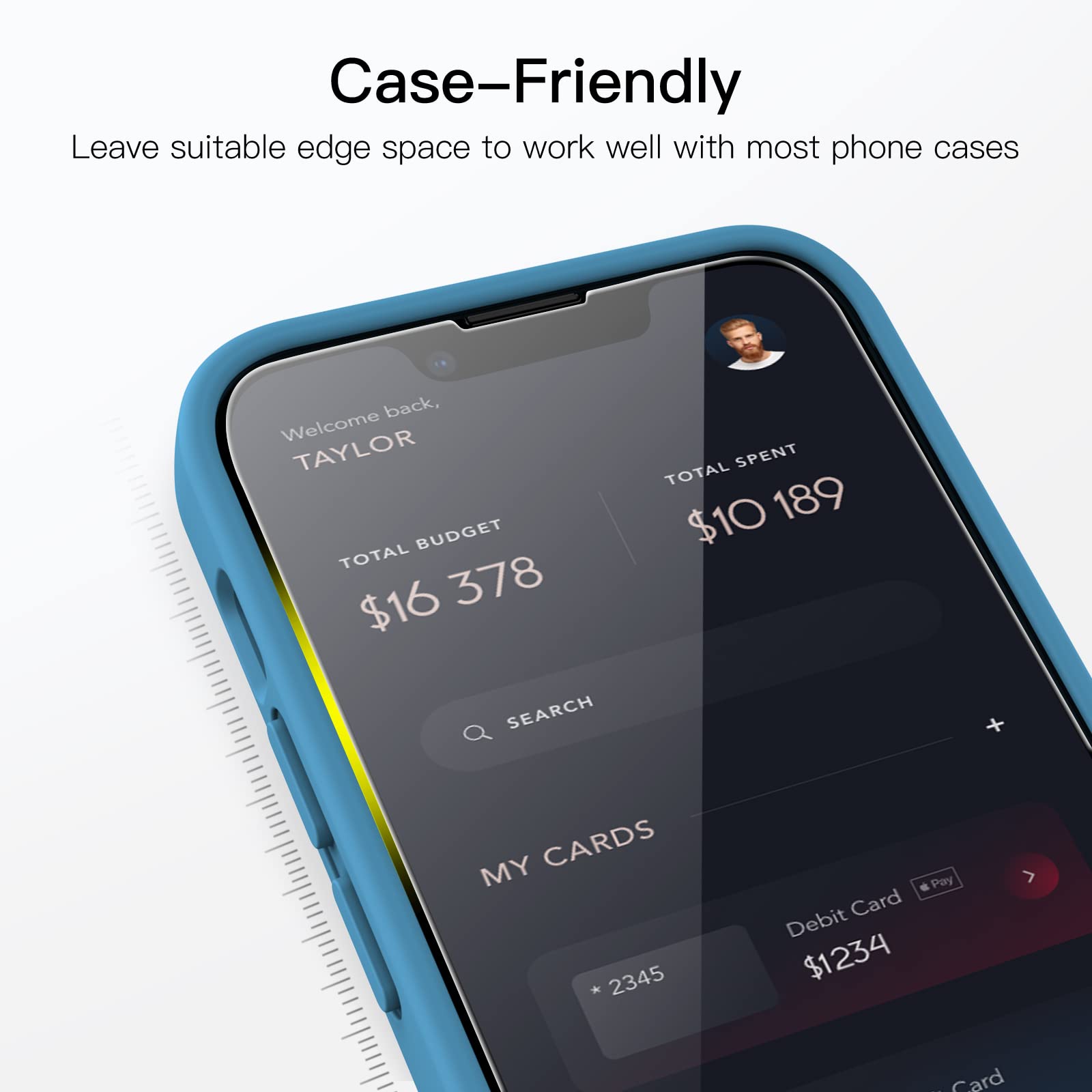 [Case-Friendly] There is enough edge space around the borders for your case to wrap around the edges of your mobile. Compatible with most phone cases