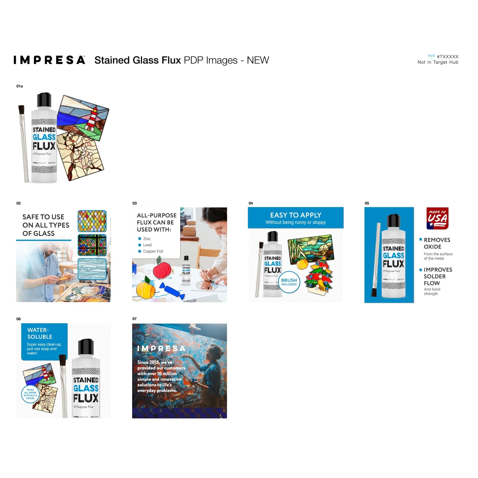 Versatile Stained Glass Use: IMPRESA's Liquid Zinc Flux is designed for both hobbyists and professionals, offering seamless application to enhance stained glass supplies. Compatible with stained glass copper foil tape, it ensures reliable bonds for elegant art