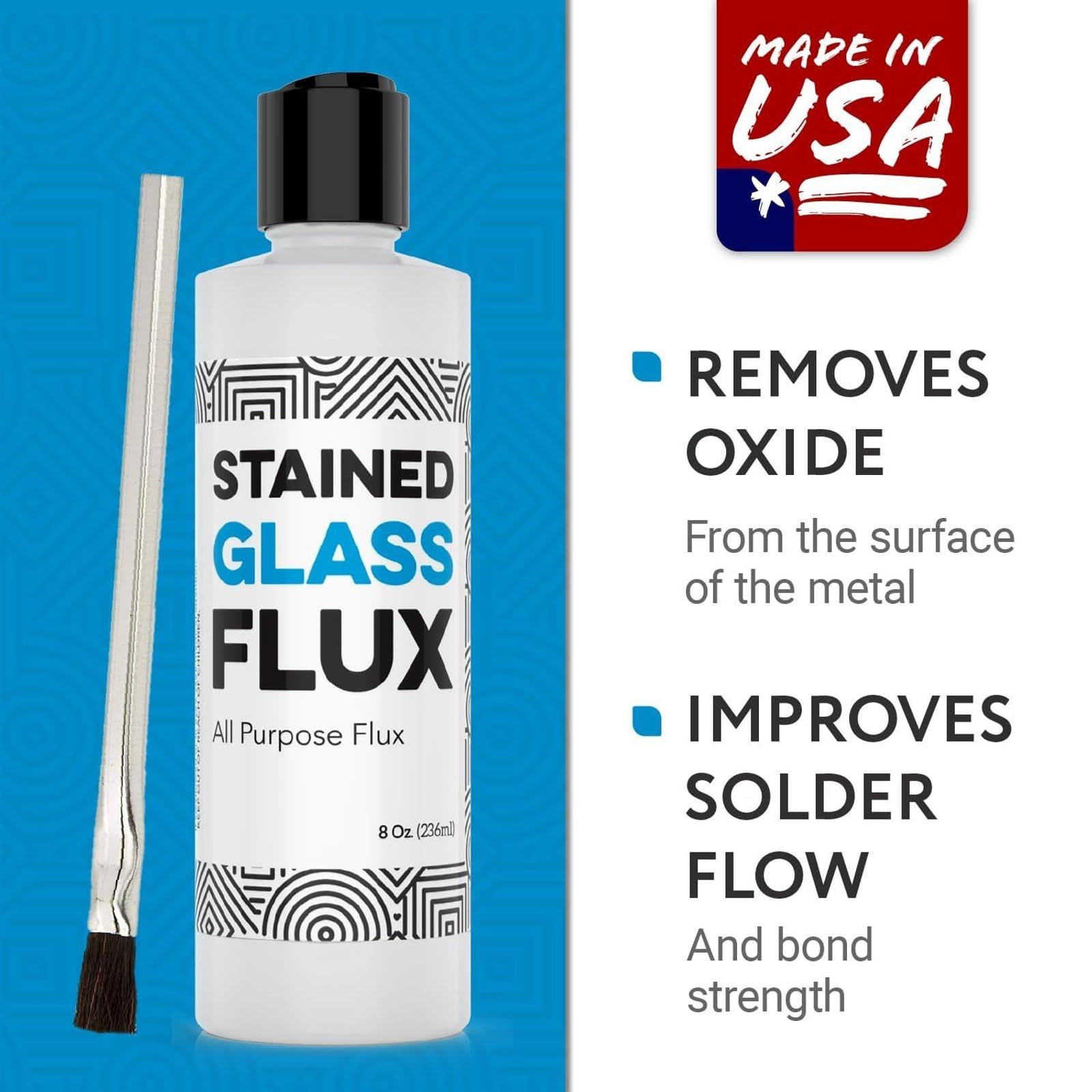Crafted in the USA: Proudly made in the USA, this flux meets high-quality standards, offering durability and reliability in stained glass making supplies. Its superior craftsmanship elevates your stained glass accessories, showcasing a commitment to excellence