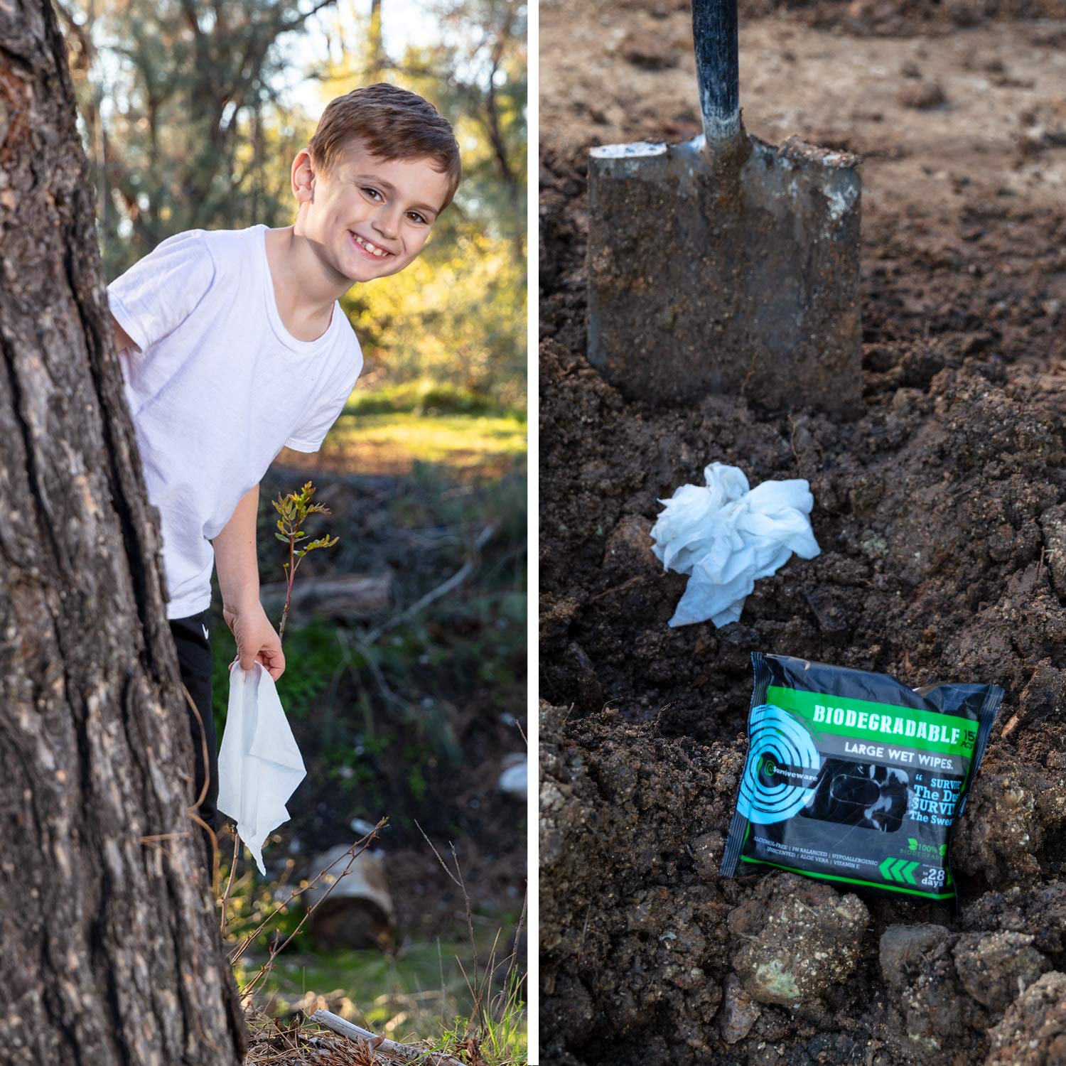 DEGRADES NATURALLY: After that number two in the woods, simply bury the body wipe and the magic starts to happen. Our camping wipes biodegrade naturally and start to decompose 28 days after use, taking only 6 months to fully degrade, far shorter than 100 years for plastic-based baby wipes.