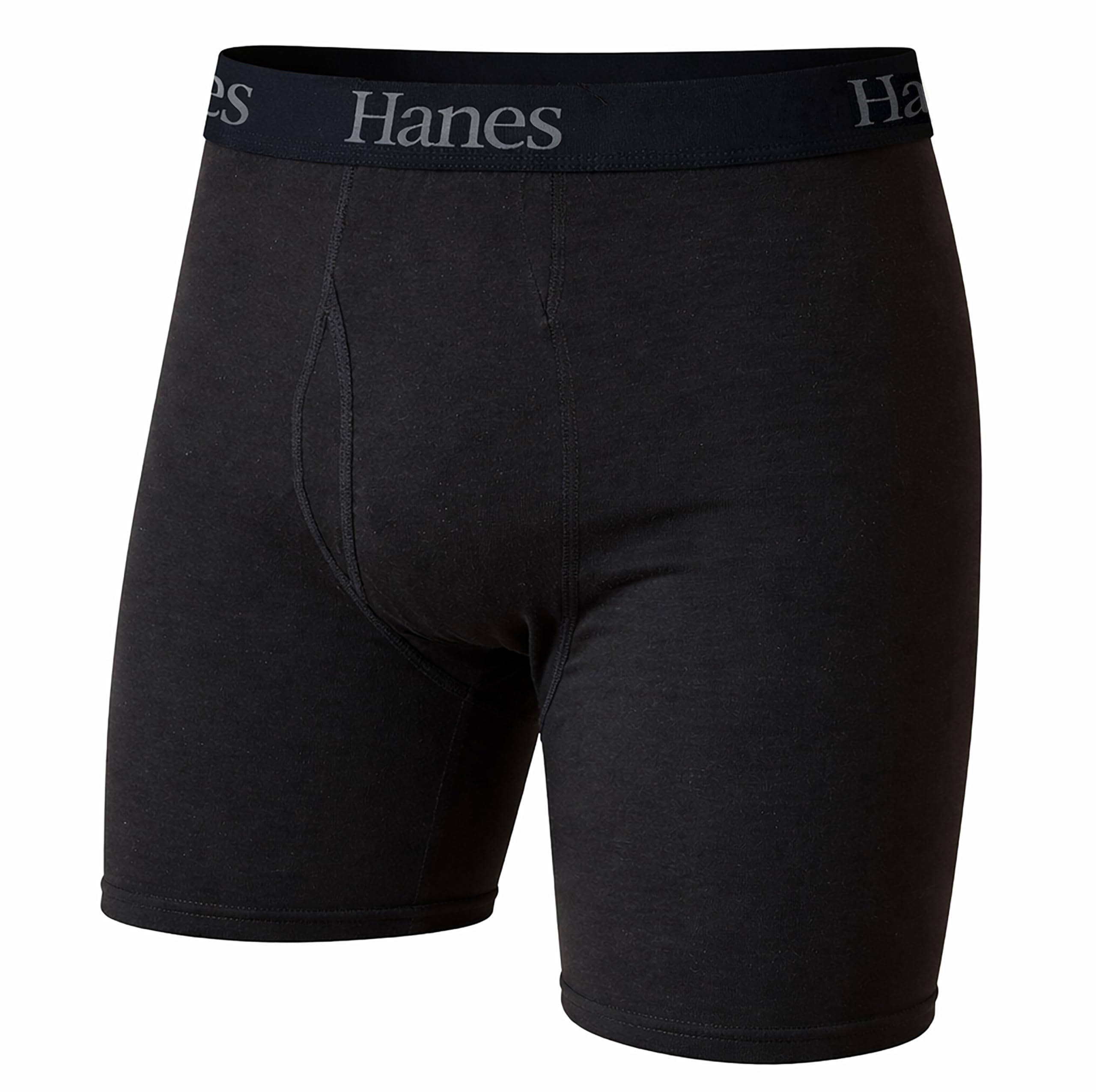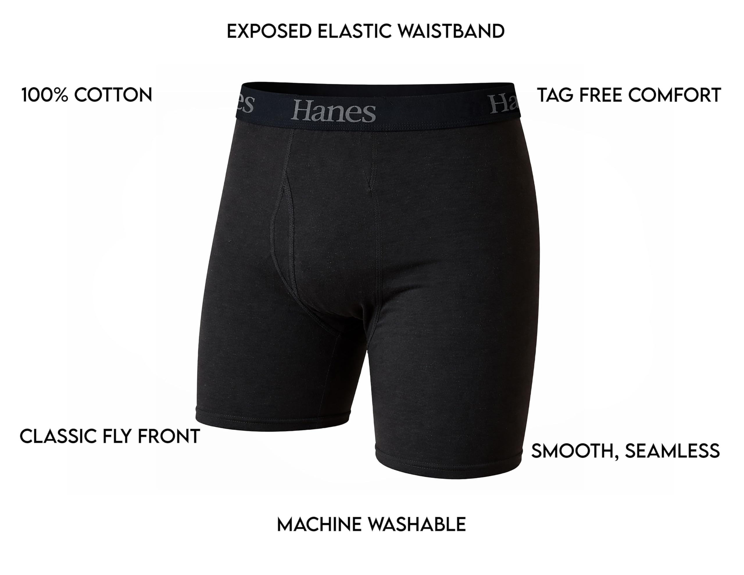 Description This Hanes value pack includes men's boxer briefs crafted from soft and breathable cotton or a cotton-rich blend (depending on the color) for everyday comfort. You'll appreciate the no-ride-up fit, smooth Tagless interior, and an improved Comfort Flex waistband that now adjusts to fit you. Moisture-wicking Cool Comfort fabric helps keep you cool and comfortable in this men's underwear- no matter how long your day is. Stock up and save with a multi-pack of men's boxer briefs so you can always keep a clean pair of Hanes underwear on hand.