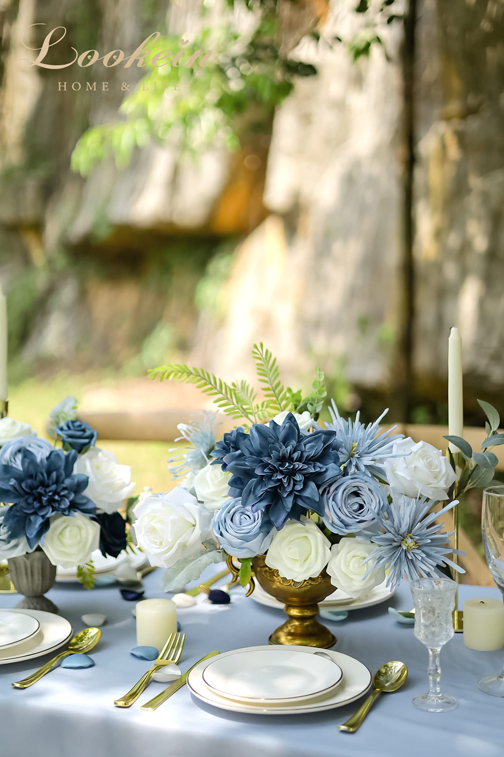 Specific Combo Pack: This artificial flower box set is combined with a variety of flowers and greeneries in a specific color scheme, which is perfect for your statement floral arrangement, making your event take on character easily.