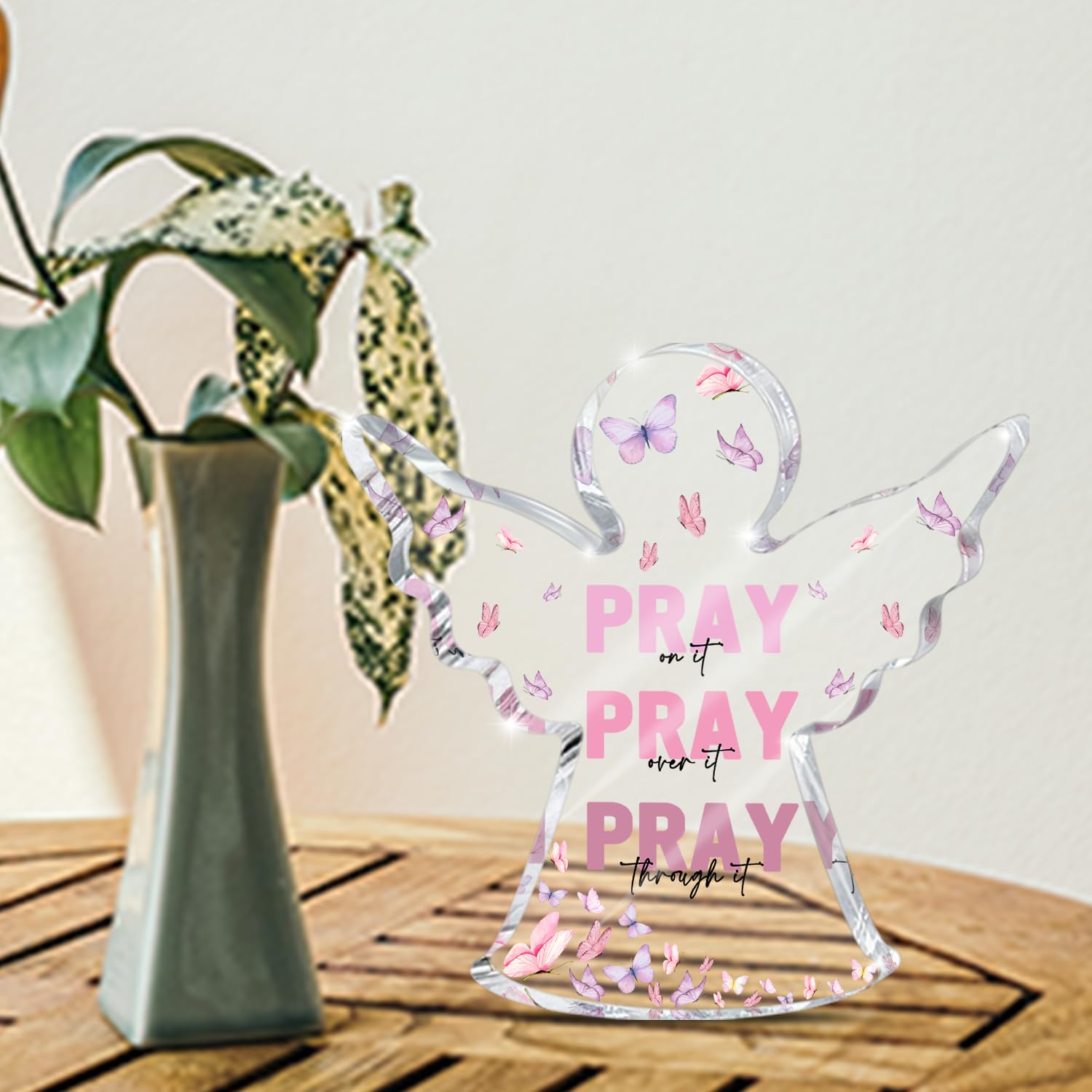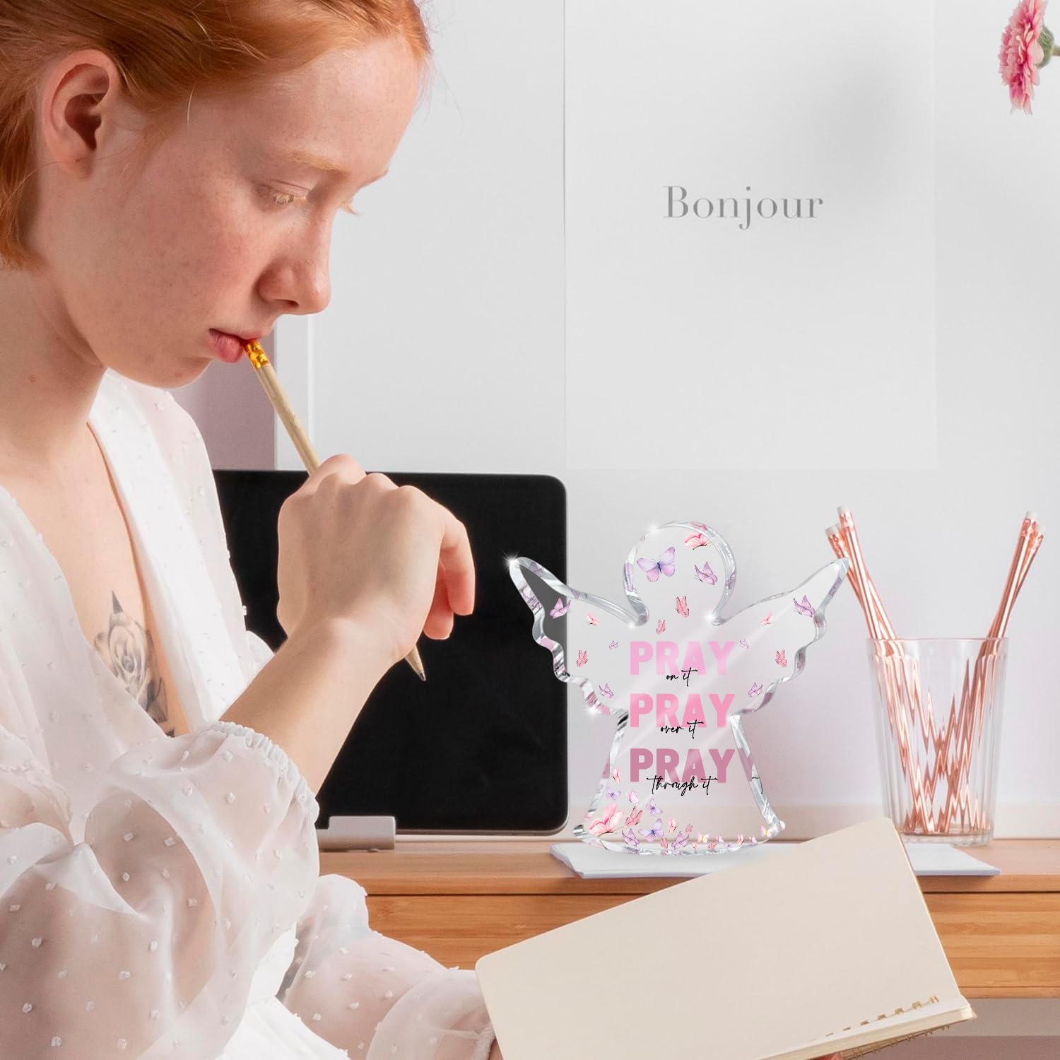 ✨ Inspirational Angel Style Design: This elegant acrylic desk sign features a delicate angel motif and the uplifting Bible verse "Pray on it, Pray over it, Pray through it" offering daily encouragement. Perfect for Christian women seeking faith-based decor, remembrance gifts, or a serene workspace reminder.