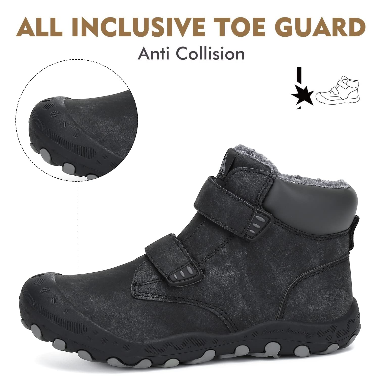 ANTI-COLLISION TOE CAP: Kids hiking boots are with all-inclusive anti-collision rubber toe cap design to protect children's feet safety when playing outdoors.